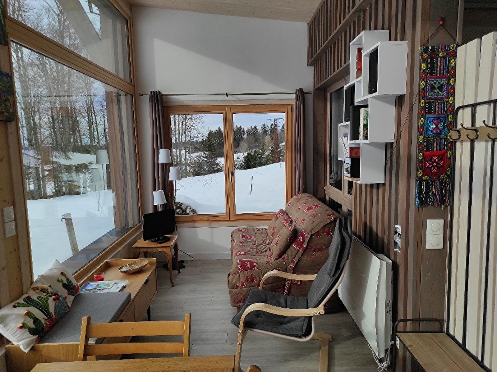Situé dans un très beau cadre de nature, « La Gelinotte » est un chalet de 39m² est composé d’une pièce principale avec coin cuisine/repas, fauteuils et canapé lit BZ. Une chambre indépendante avec lit de 160cm et un coin nuit fermé par un rideau avec lits superposés de 90cm. Salle d’eau et WC. Un accès extérieur sur terrasse et terrain non clos complète le tout. Stationnement sur parking public.