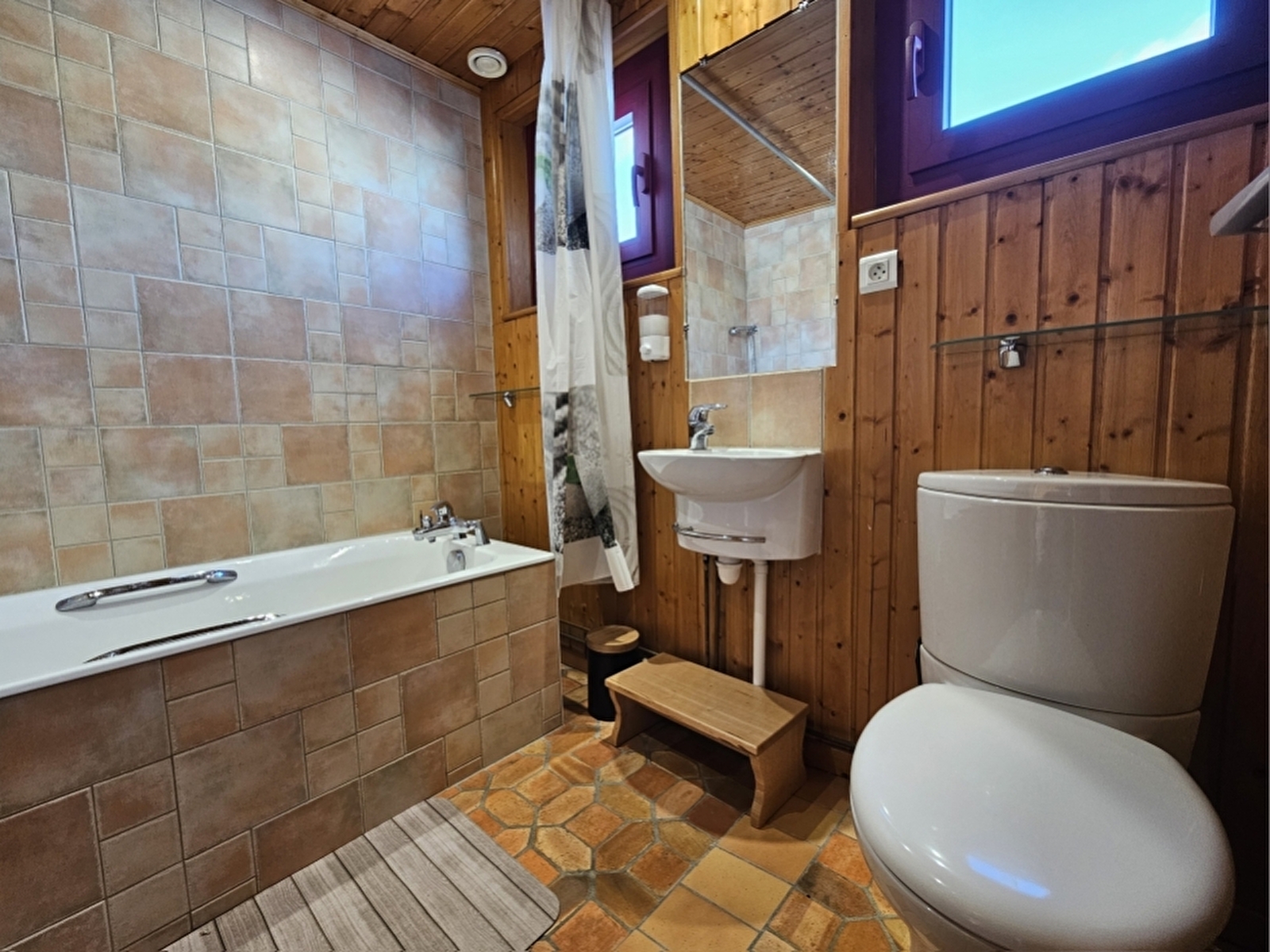 Au même niveau, se trouve une chambre avec lit double (180cm/190cm) ainsi qu'une salle d'eau avec toilettes.