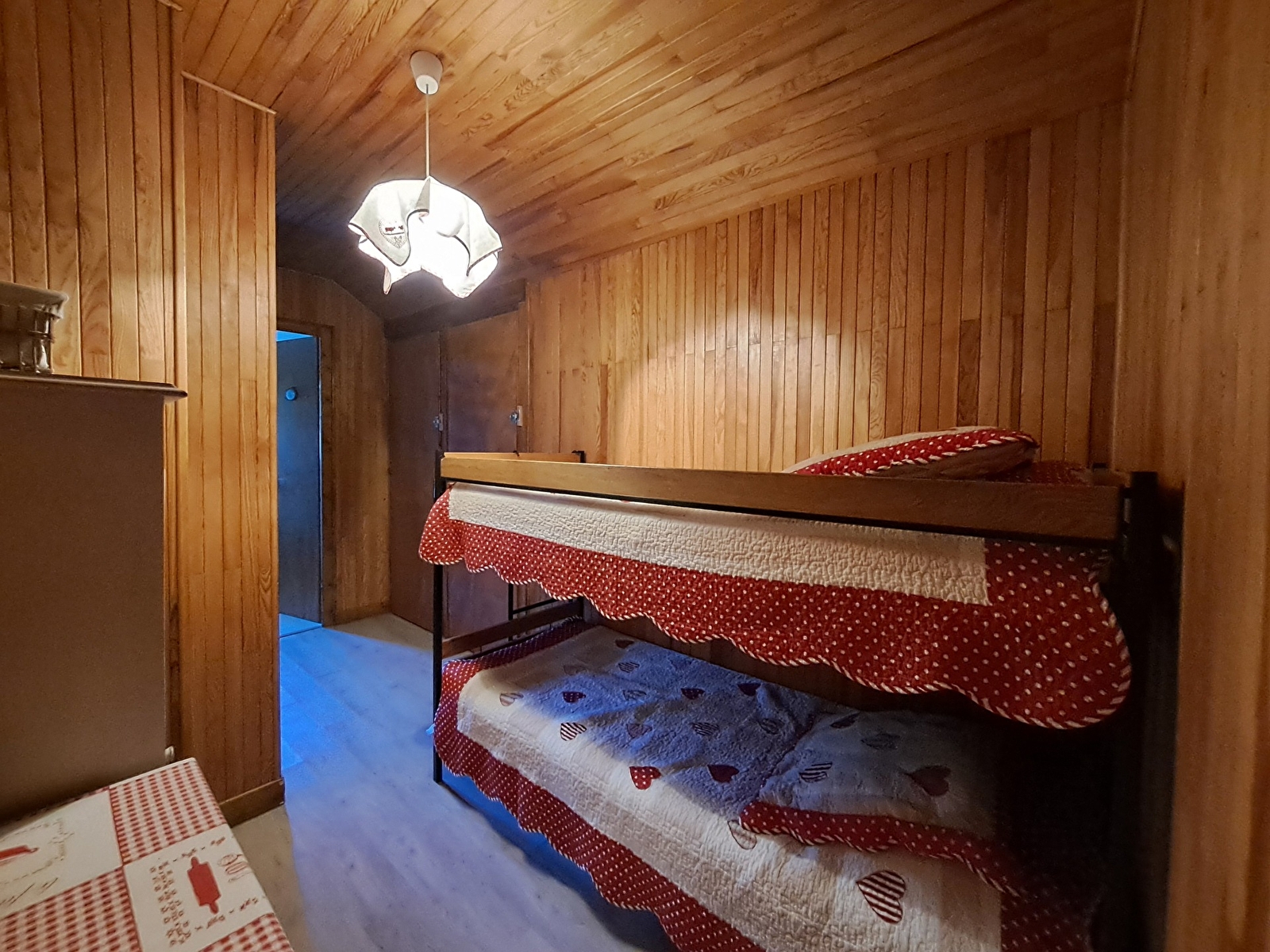 Cet appartement de 43m2 au dernier étage d’un chalet est composé d’une pièce principale avec canapé lit gigogne et coin repas ainsi qu’une cuisine indépendante. Le coin nuit est composé de 1 chambre avec lit en 140 et un coin montagne avec lits superposés ainsi qu’une salle d’eau et wc séparé.