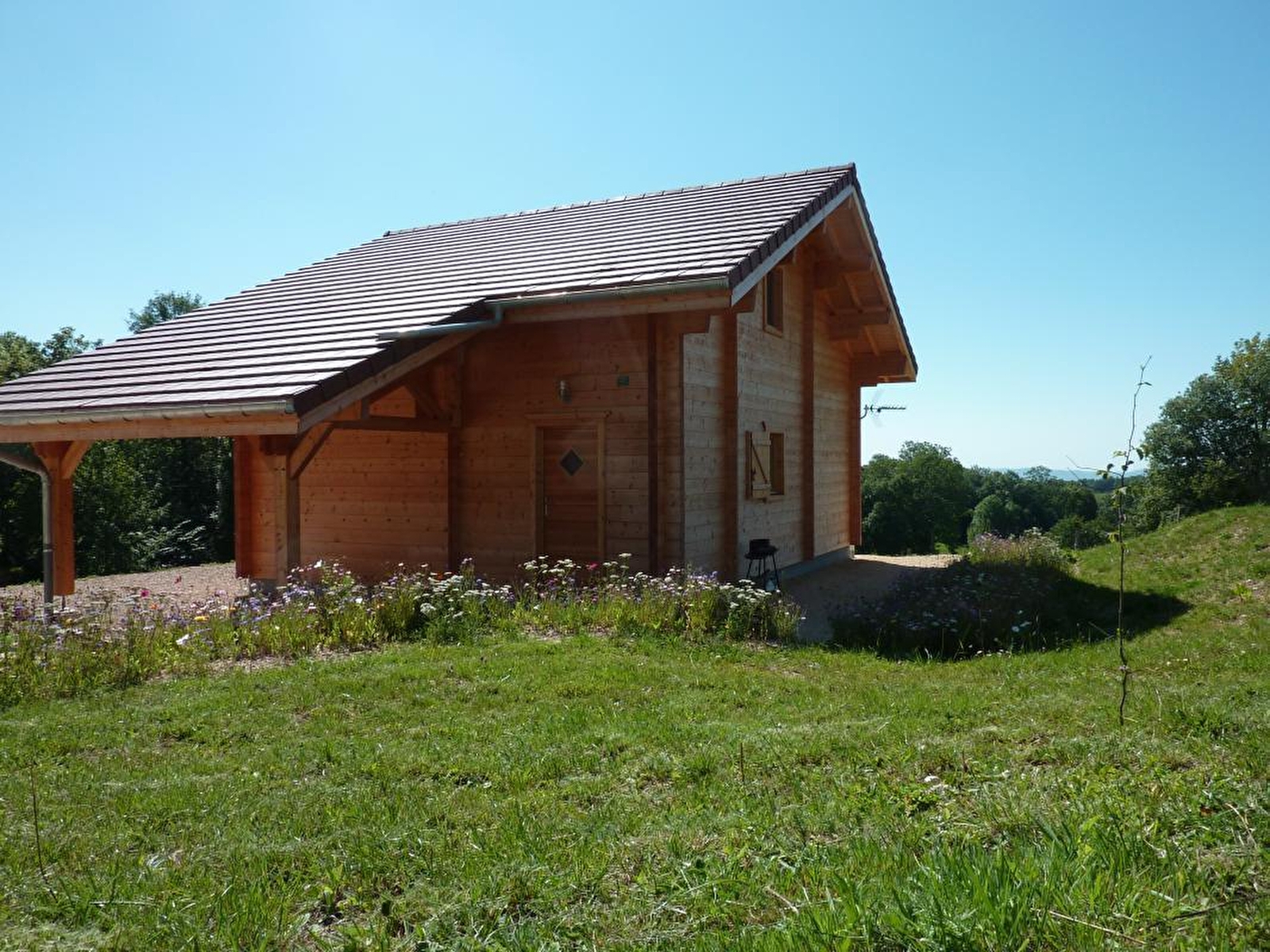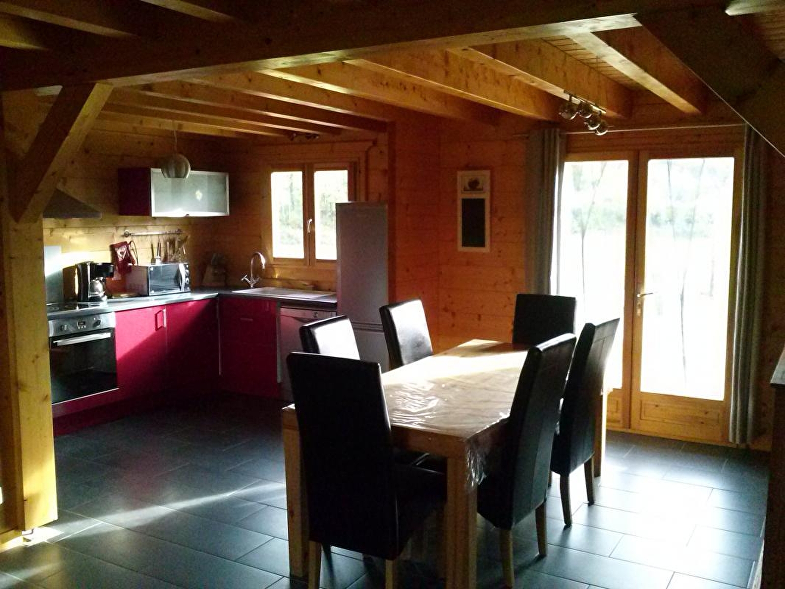 Joli chalet indépendant en région des Lacs et à deux pas du Haut-Jura. Au rez de chaussée : hall d'entrée, cuisine entièrement équipée ouvrant sur le séjour, poêle à bois. 1 chambre de plein pied avec un lit 2 place, une salle d'eau et un wc indépendant. A l'étage: mezzanine salon avec TV écran plat, tnt, lecteur dvd, une chambre avec 2 lits 1 personne et une chambre avec: 1 lit de 160cm (draps fournis uniquement pour cette chambre), balcon. Terrasse avec salon de jardin et barbecue. Terrain attenant non clos. Animaux acceptés avec caution (voir avec propriétaire). Chauffage électrique au sol. Rangement pour les vélos.