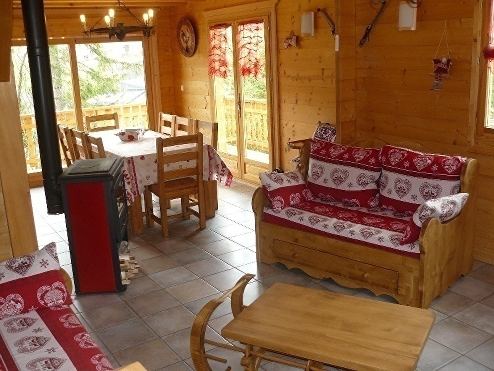 Très beau chalet avec accès de plain pied, cuisine intégrée, micro-ondes, congélateur, séjour-salon avec poêle à bois, salle de bain, CH1: 1 lit 2 pl, 1 lit bébé et WC indépendant. A l'étage: mezzanine avec espace détente, salle d'eau (douche avec jets hydrothérapie, sèche-cheveux), CH2: 1 lit 2 pl, 1 lit 1 pl, CH3: 1 lit 2 pl, 1 lit 1 pl, chauffage central. Grand balcon avec vue sur le village et les pistes de ski. Terrain attenant non clos, et bordé par un petit ruisseau. Salon de jardin, barbecue. Parking privé sur place et volets dans les chambres. Toutes charges comprises. Local à ski au sous-sol. ACCES WIFI SECURISE GRATUIT. Tarif possible pour 2 personnes : se renseigner auprès des propriétaires.