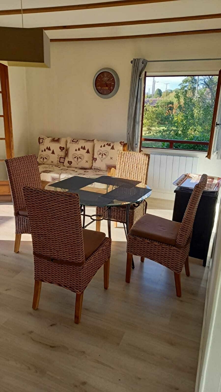 Classé 3 étoiles, charmant chalet à louer pour vos vacances, entouré d'un beau et grand terrain clos. Le Gîte est accessible facilement et rapidement par l'autoroute, la départementale, les bus ou le covoiturage. Il est conçu idéalement pour 4 personnes, accessible par un escalier. Très fonctionnel et pourvu de tout le nécessaire, il est composé d'un séjour-salon, d'une kitchenette entièrement équipée, de deux chambres, d'une salle de douche et d'un wc séparé. Trois couchages différents.