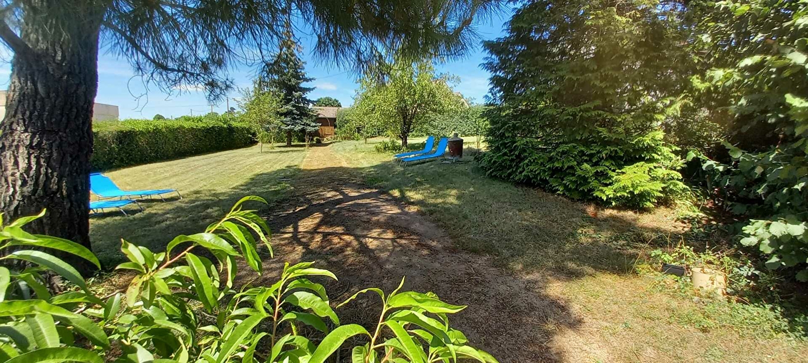 Un superbe terrain clos entoure le chalet. Vous en avez toute jouissance. Selon votre saison de location, vous pourrez admirer les nombreuses fleurs et plantes du jardin et même cueillir quelques fruits. Transats, Table et Chaises, Barbecue sont à votre disposition. A quelques mètres du chalet, vous pourrez pêcher, jouer au tennis, vous promener dans un grand parc.