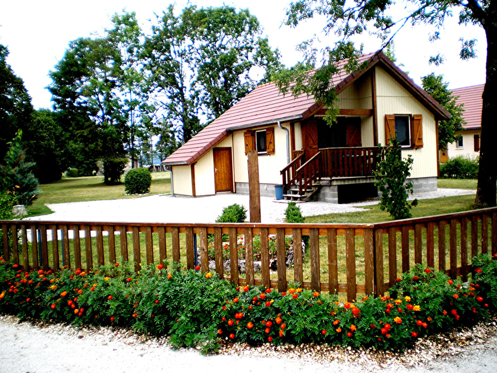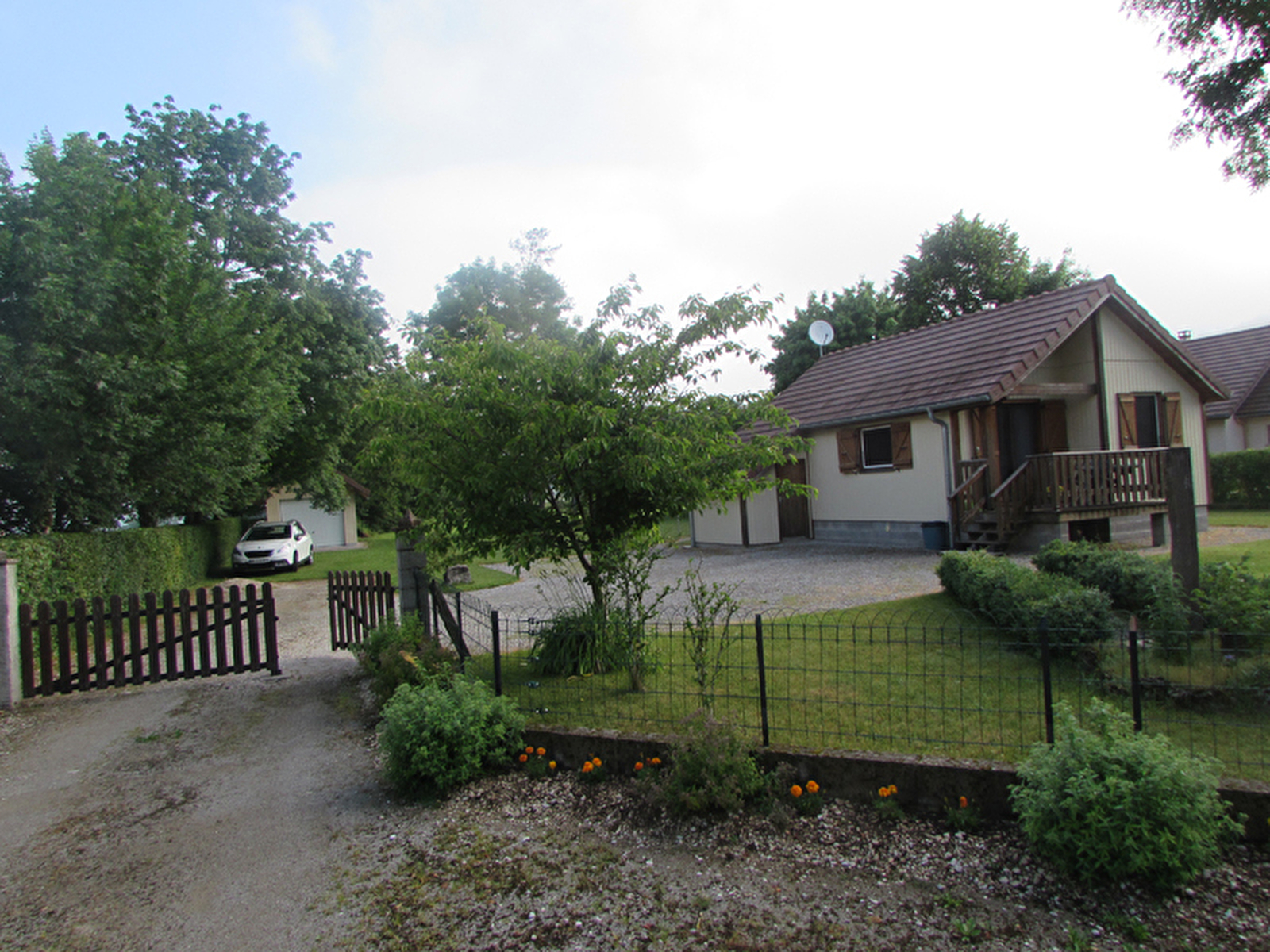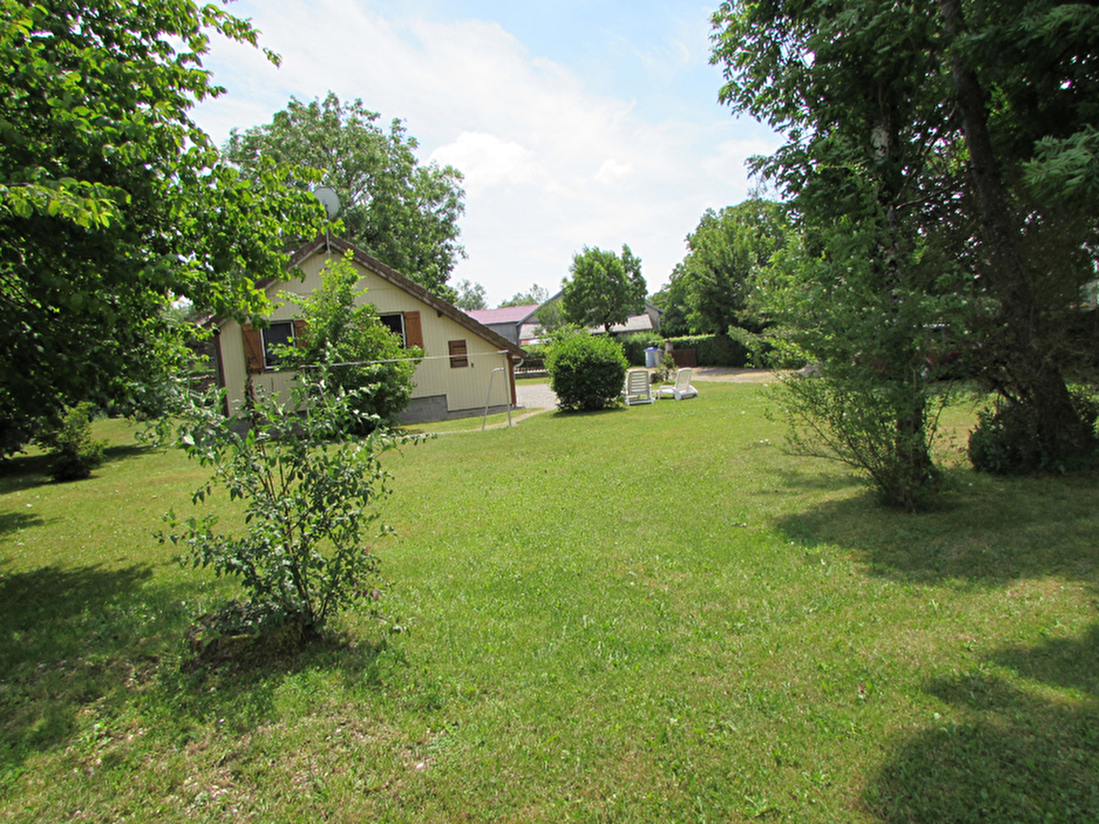 Terrain attenant arboré clos de 4000 m², parking devant le chalet. A 800 m du lac de Chalain.