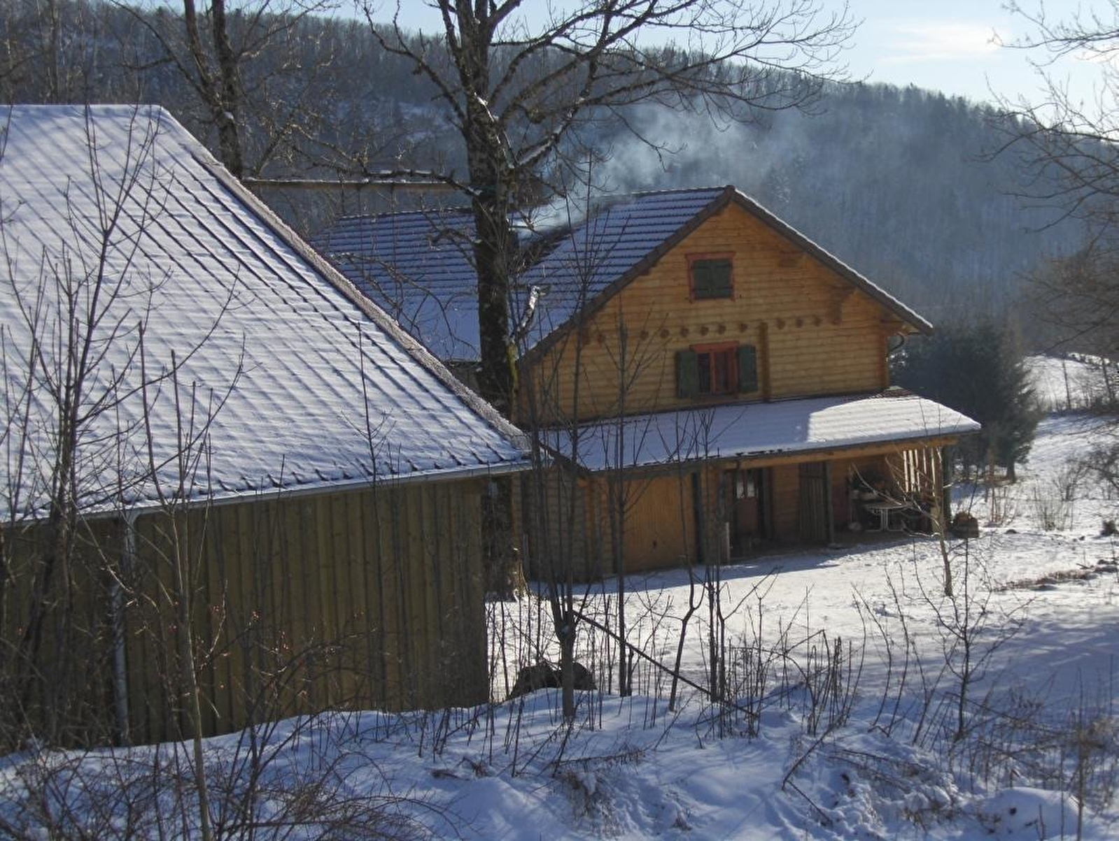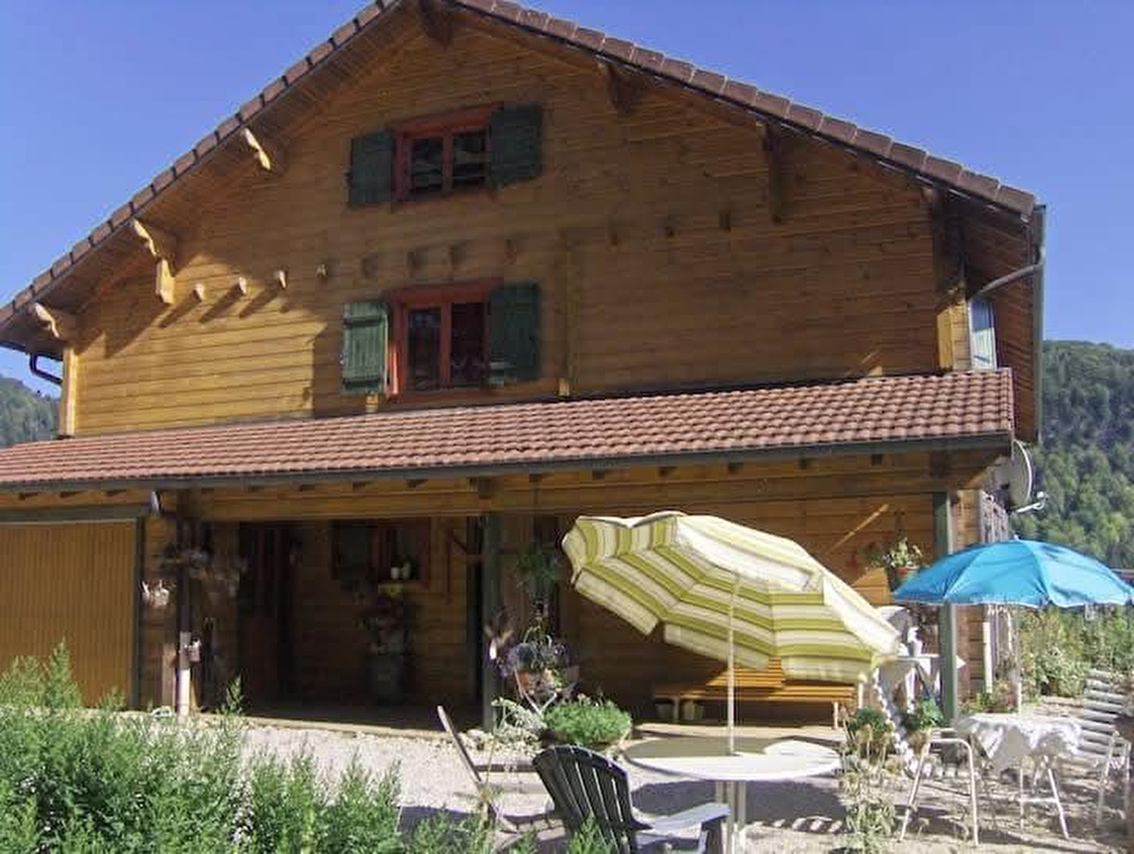 Chalet mitoyen au cœur du PNR du Haut Jura. Au rez de chaussée: cuisine équipée avec espace salle à manger, penderie, salle d'eau, wc intégrés. Au 1er étage : espace détente avec salon, TV écran plat, lecteur DVD, bibliothèque, CH1: 1lit 2pl, CH2: 1lit 2pl. Terrain arboré et fleuri attenant. Terrasse couverte et terrasse extérieure, mobilier de jardin, barbecue, table de ping-pong, abris voiture. Équipement bébé. Accès TGV à 15km. Matériaux naturels de construction. Cet hébergement, situé dans un environnement préservé, bénéficie de la marque "Parc du Haut-Jura", sans Internet, déconnexion en pleine nature, TV mode DVD, bibliothèque, idéal pour la randonnée, la baignade, la lecture et l'écriture. Seul animal accepté 1 chien. (Forfait ménage obligatoire pour les l'accueil des animaux). Ferme fromagère bovin et caprin à proximité.
