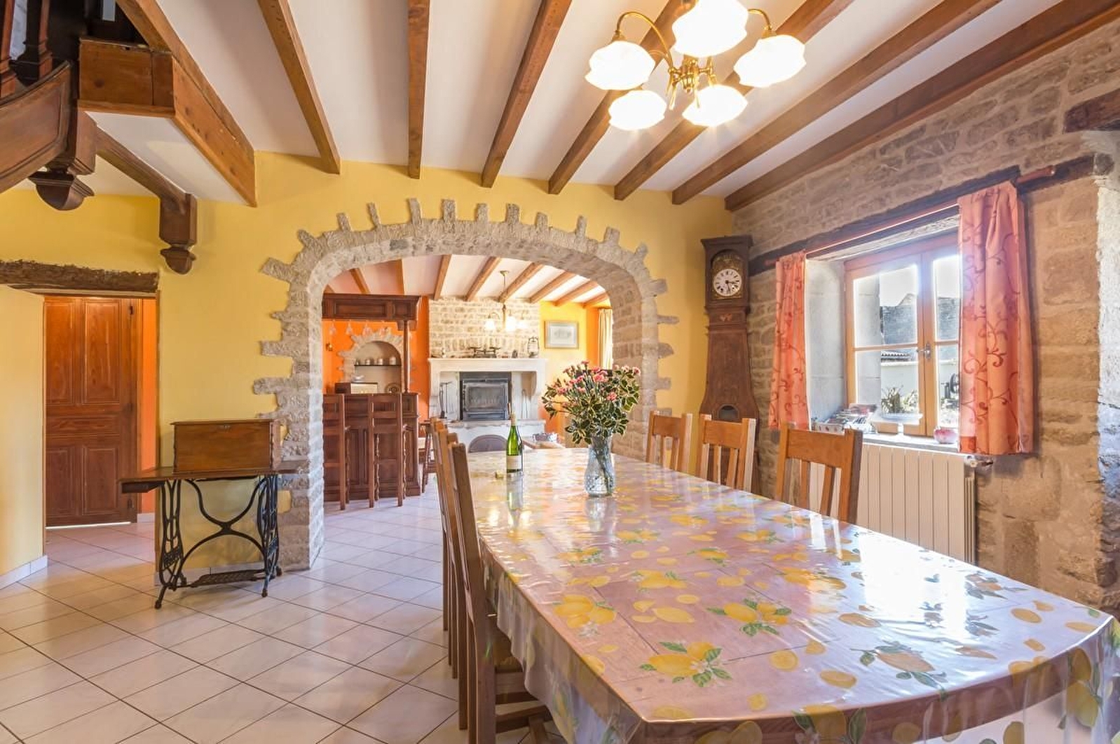 Cette vaste maison en pierre mitoyenne (à une grange appartenant aux propriétaires) a de forts atouts pour y passer un séjour agréable en petit groupe : piscine couverte et à proximité, hauts lieux touristiques à visiter.