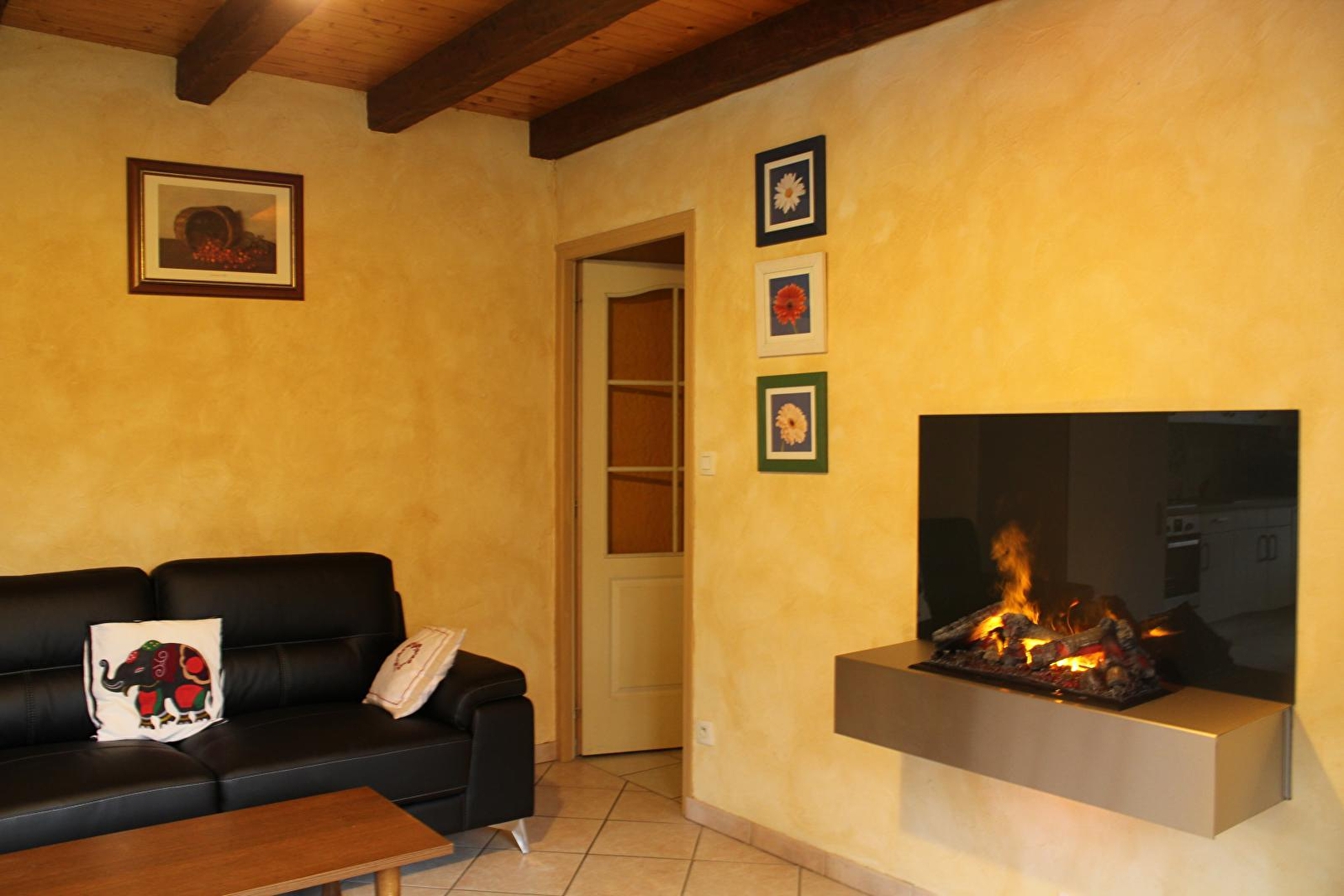 Logement dans une ancienne ferme rénovée. Séjour, salon, cheminée électrique, coin-cuisine, salle de bains (sèche-cheveux), wc indépendants, ch1: 1 lit 2 pl, ch2: 2 lits 1 pl, buanderie, cour, salon de jardin, terrain non clos, barbecue. Parking privé sur place. Volets dans les chambres. Chauffage central. Toutes charges comprises. Accès Wifi sécurisé.