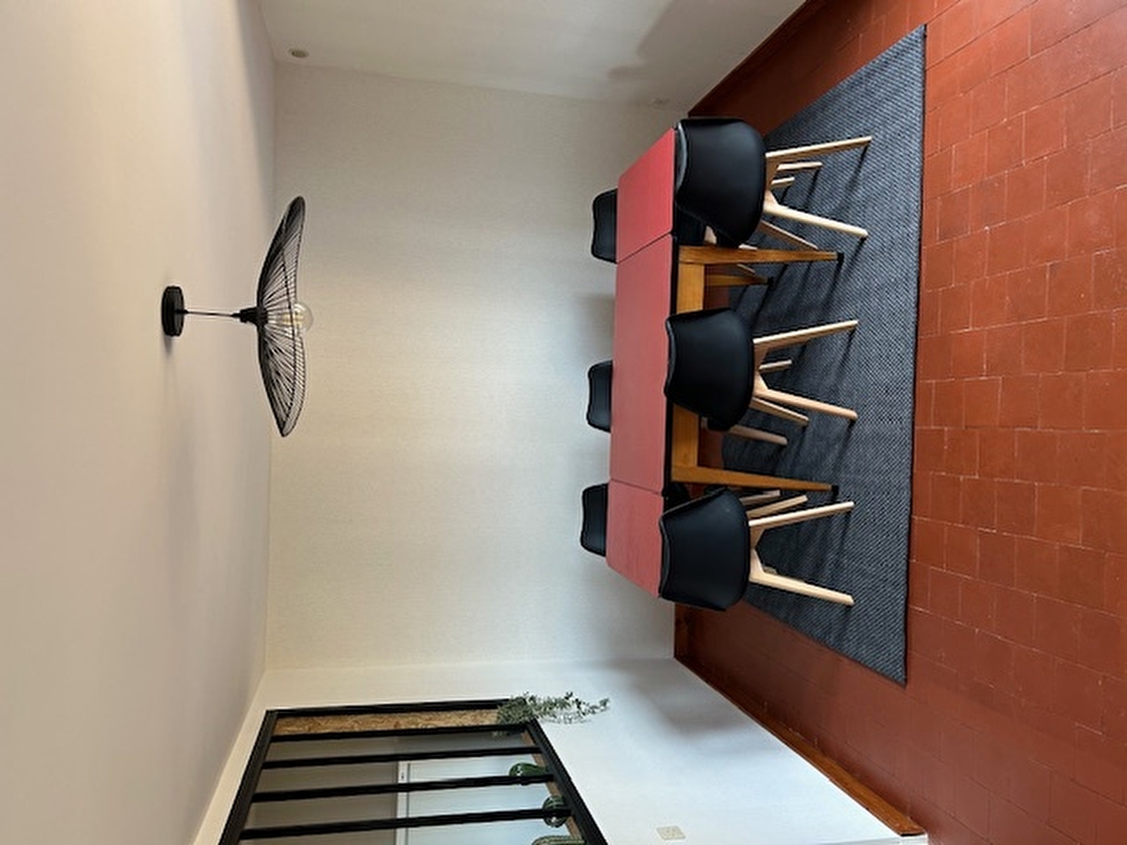 Détente assurée dans la petite cour équipée d’un salon de jardin et d’un barbecue.