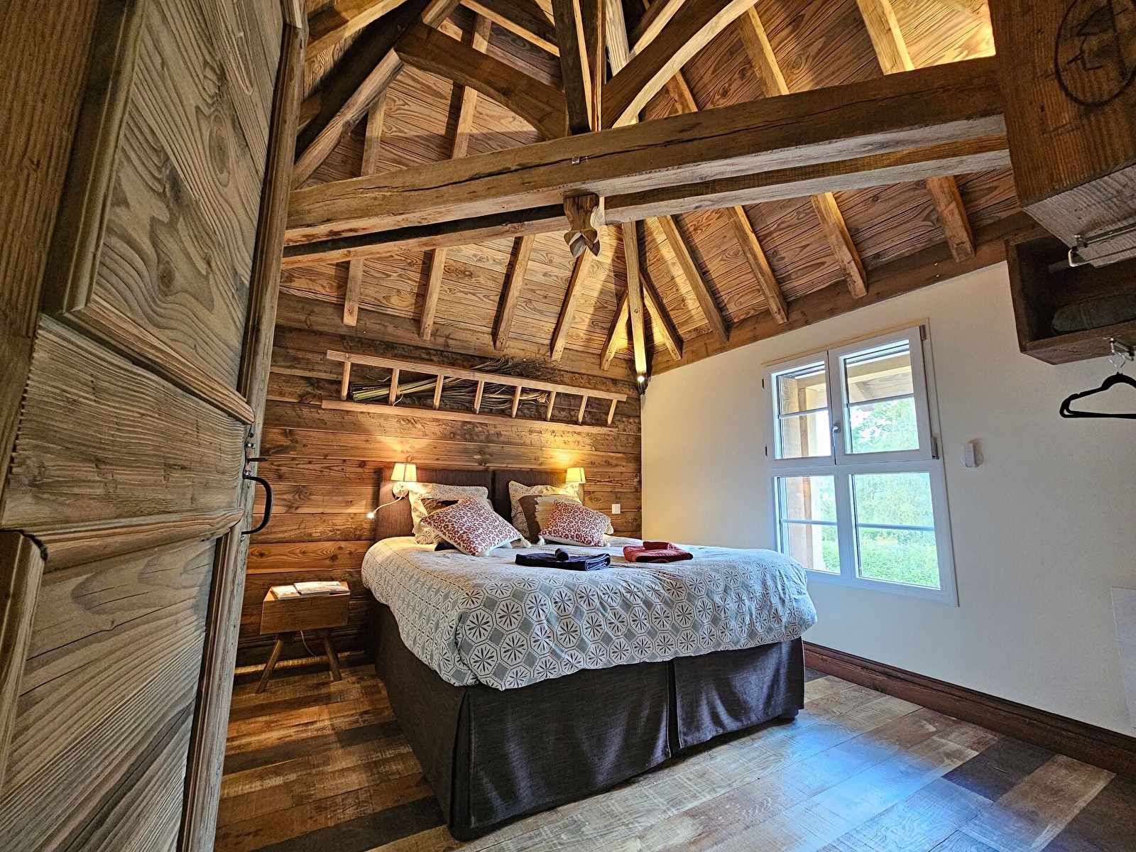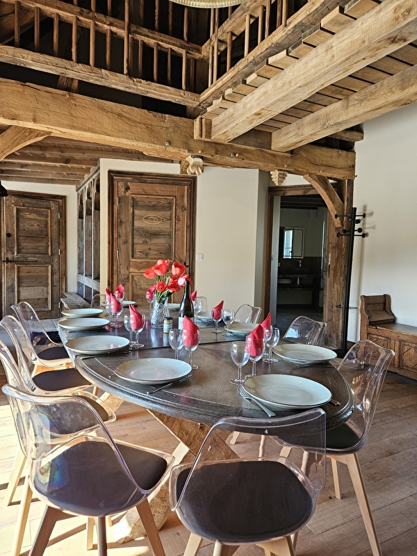 Librement inspiré du Château du Clos Vougeot, cet impressionant gîte 100 % bois, avec grand SPA de nage a été entièrement construit par Arnaud, charpentier de métier et Hélène, son épouse. Ils vous accueilleront dans un hébergement de standing à la décoration raffinée et aux imposantes charpentes apparentes.