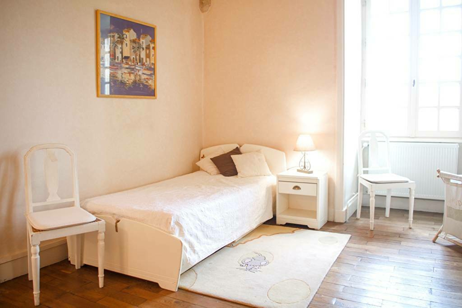 Vous bénéficiez de tout l'hébergement situé au premier étage du château. Votre appartement est accessible par un escalier en colimaçon situé dans l'une des trois tours qui vous offre une totale autonomie. En été, profitez de l'extérieur : salon de jardin dans la cour et le jardin, jeux pour enfants, barbecue ...