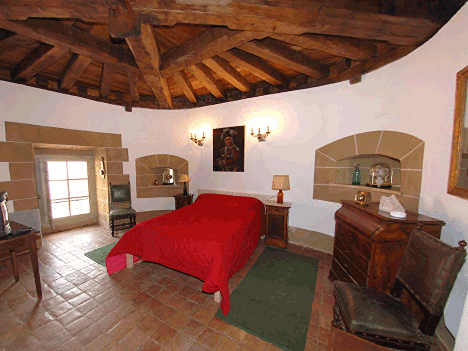 fenêtre et meurtrières, salle d'eau avec douche et lavabo.