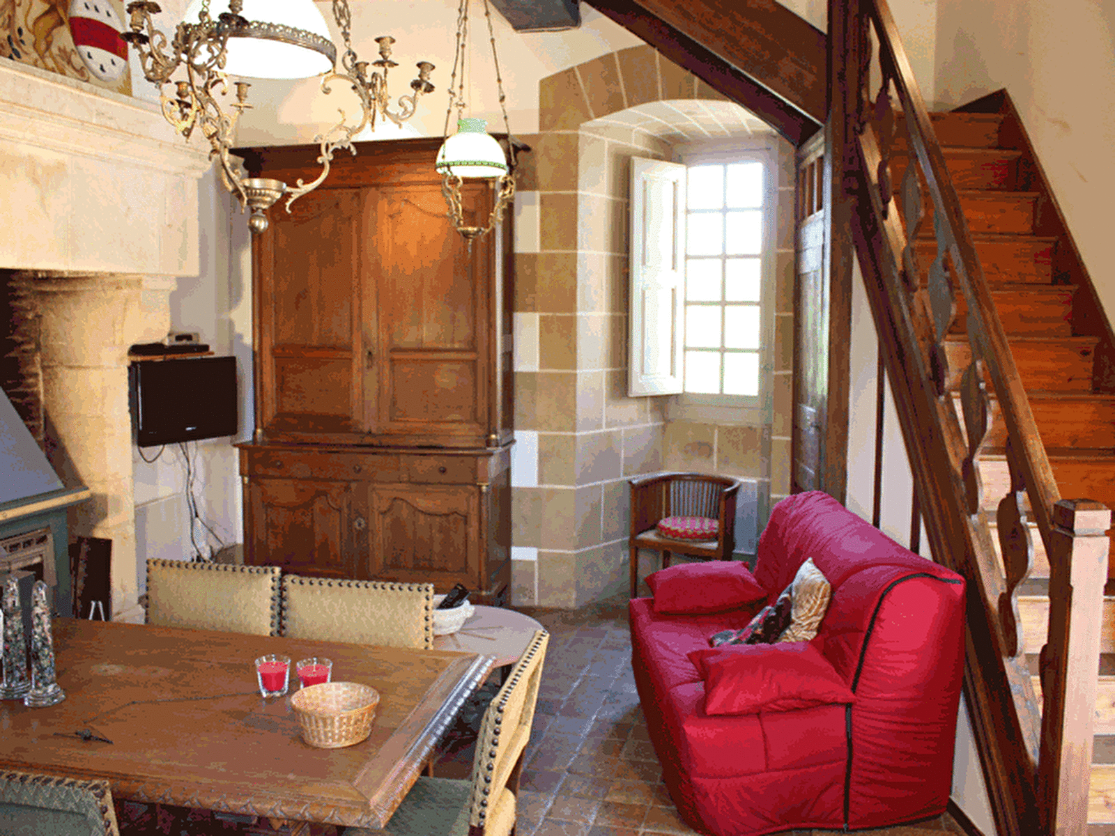 - Premier étage : Séjour double exposition dans un décor dépoque, coin cuisine, banquette BZ, wc.