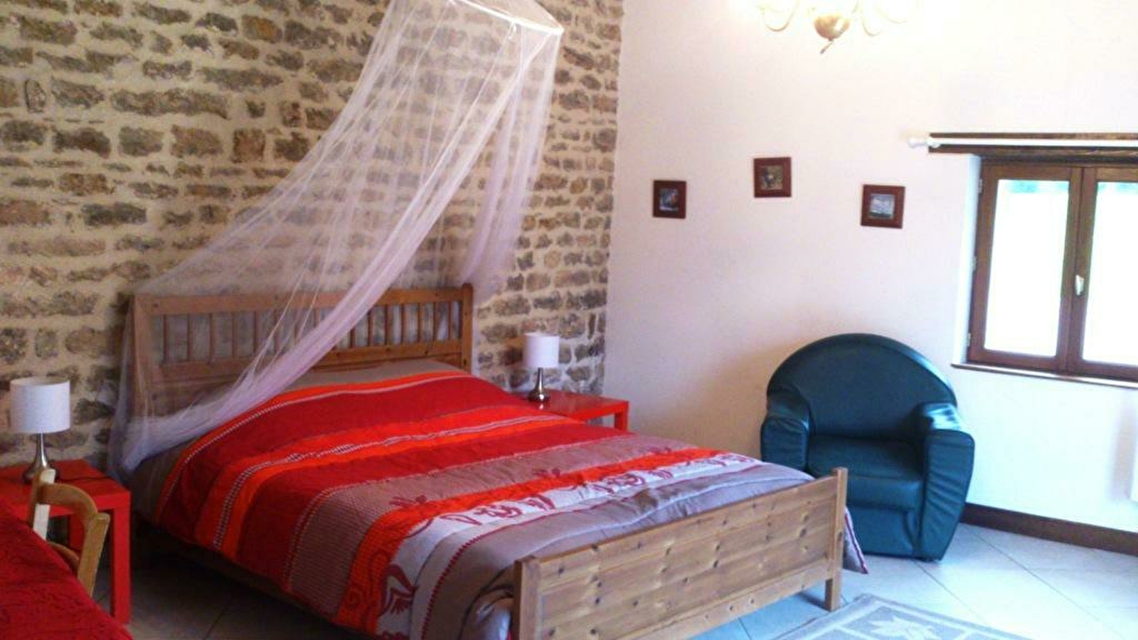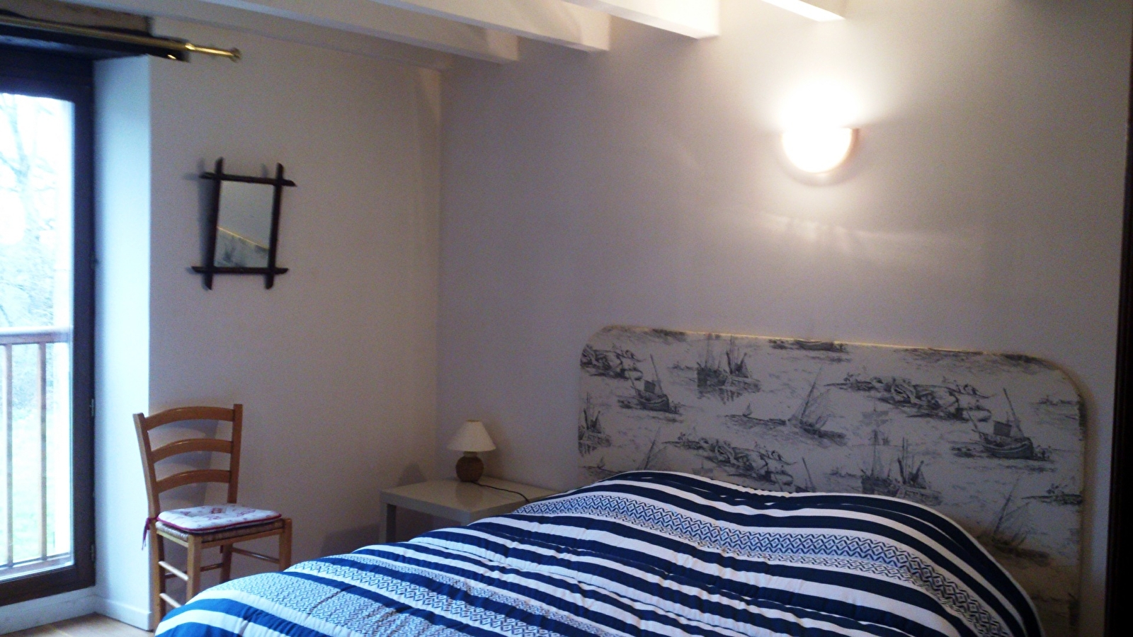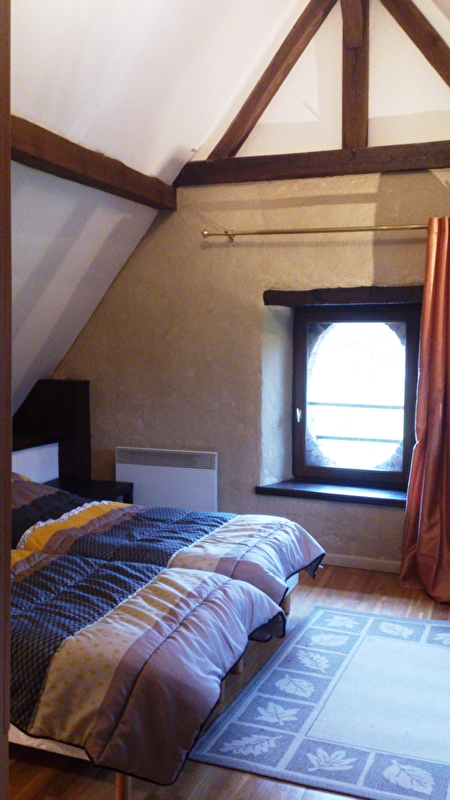 Au premier étage : une chambre de deux personnes, une salle de bains avec une douche et un WC indépendant. Au deuxième étage : deux chambres de deux personnes chacune. Possibilité de réunir les lits pour faire un lit de couple ou des lits indépendants. Un lit d'appoint (120 x 190) est à disposition dans le couloir.