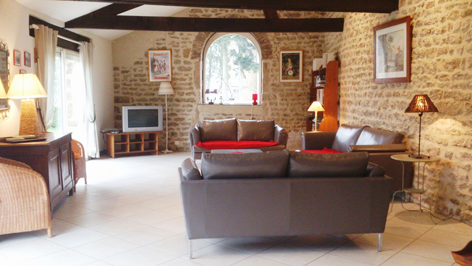 Au rez-de-chaussée : une cuisine équipée / salle à manger, un grand séjour spacieux avec cheminée sur le jardin particulier, 2 grandes baies vitrées, trois canapés et des fauteuils et le coin TV bibliothèque. Puis, une chambre spacieuse avec un lit double parental, une salle de bains avec une baignoire et WC indépendant.