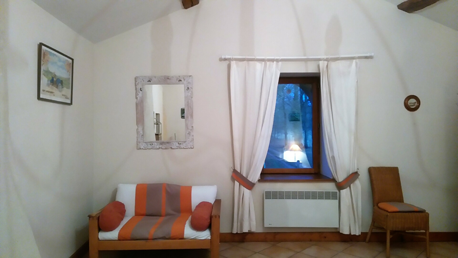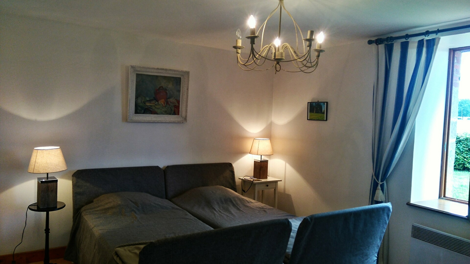 LA MAISON ANNEXE à côté se compose d'un grand studio avec trois personnes soit 3 lits, soit un lit double et un lit simple, et d'une salle de douche, meuble lavabo et W-C.