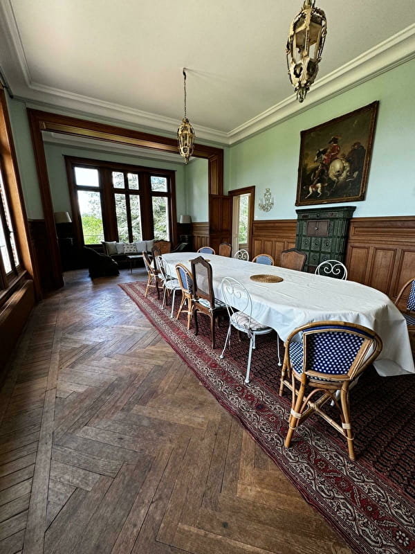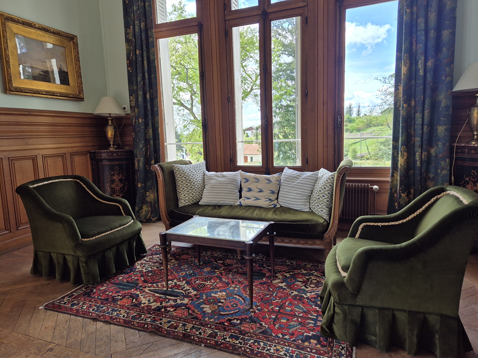 Construit dans un parc arboré, Saint Germain des Rives comporte au rez-de-chaussée plusieurs salons en enfilade meublés et décorés par la famille propriétaire qui vous fera découvrir son art de vivre.