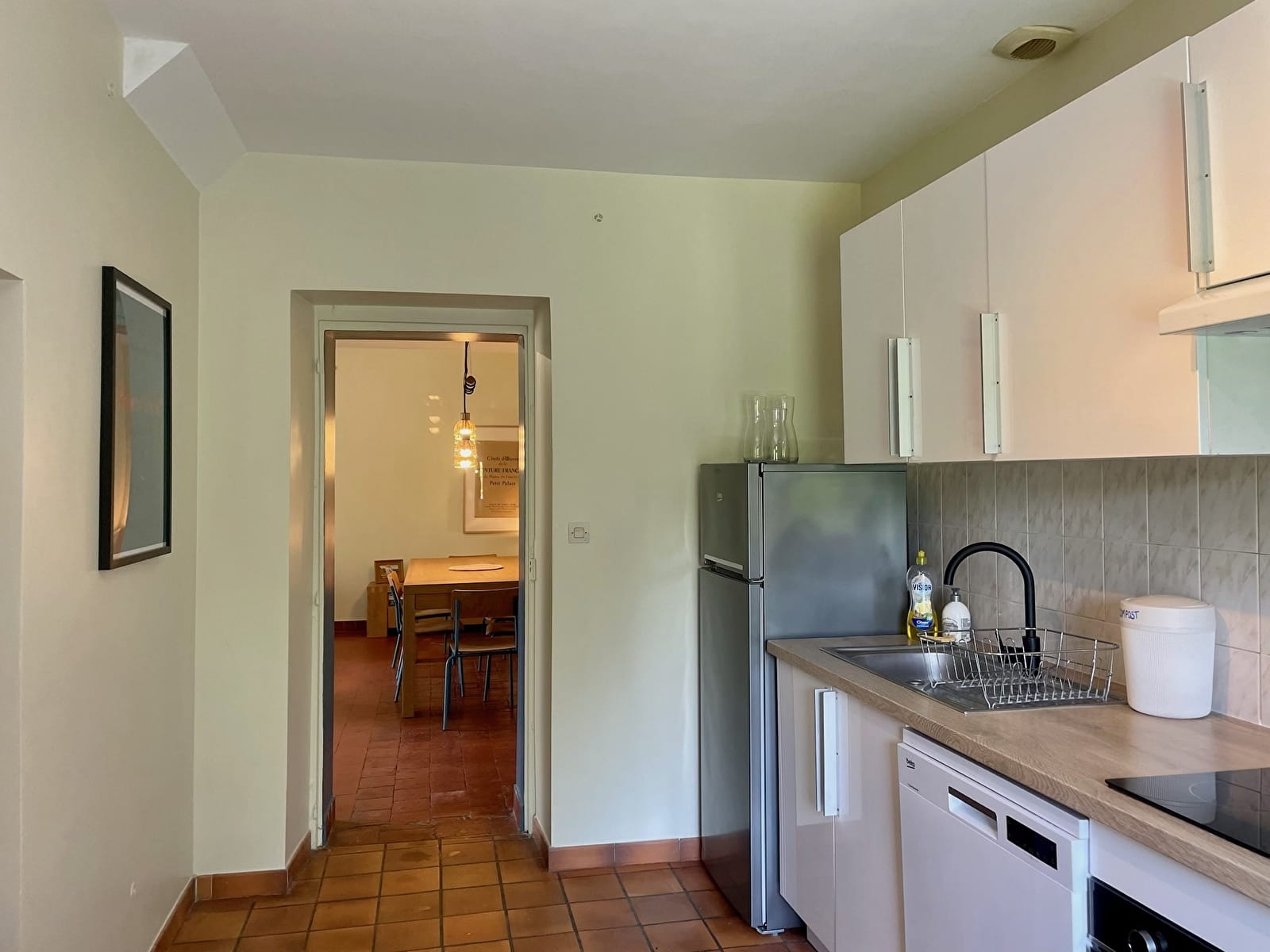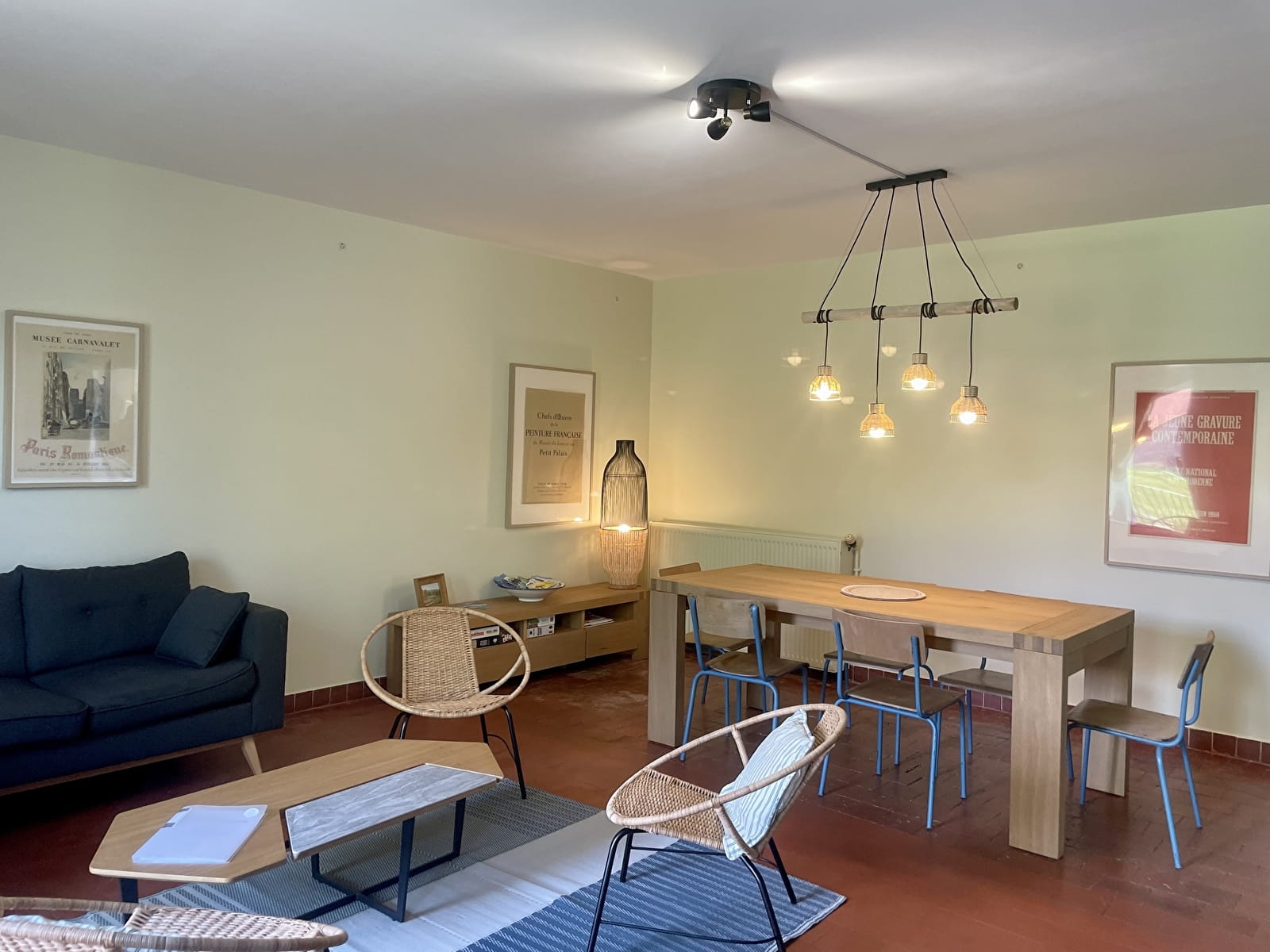 À l’étage, trois chambres dans les anciennes combes. La plus grande chambre avec son lit king-size, une autre chambre avec lit queen-size et la troisième chambre avec deux lits simples. Chaque chambre contient plusieurs rangements. Également à l’étage, une seconde salle de bain avec baignoire et aussi un espace de jeux pour les enfants. Profitez d’un jardin privé et équipé (transats, tables, chaises, barbecue et parasol). À quelques pas du logement, vous avez accès à une piscine.