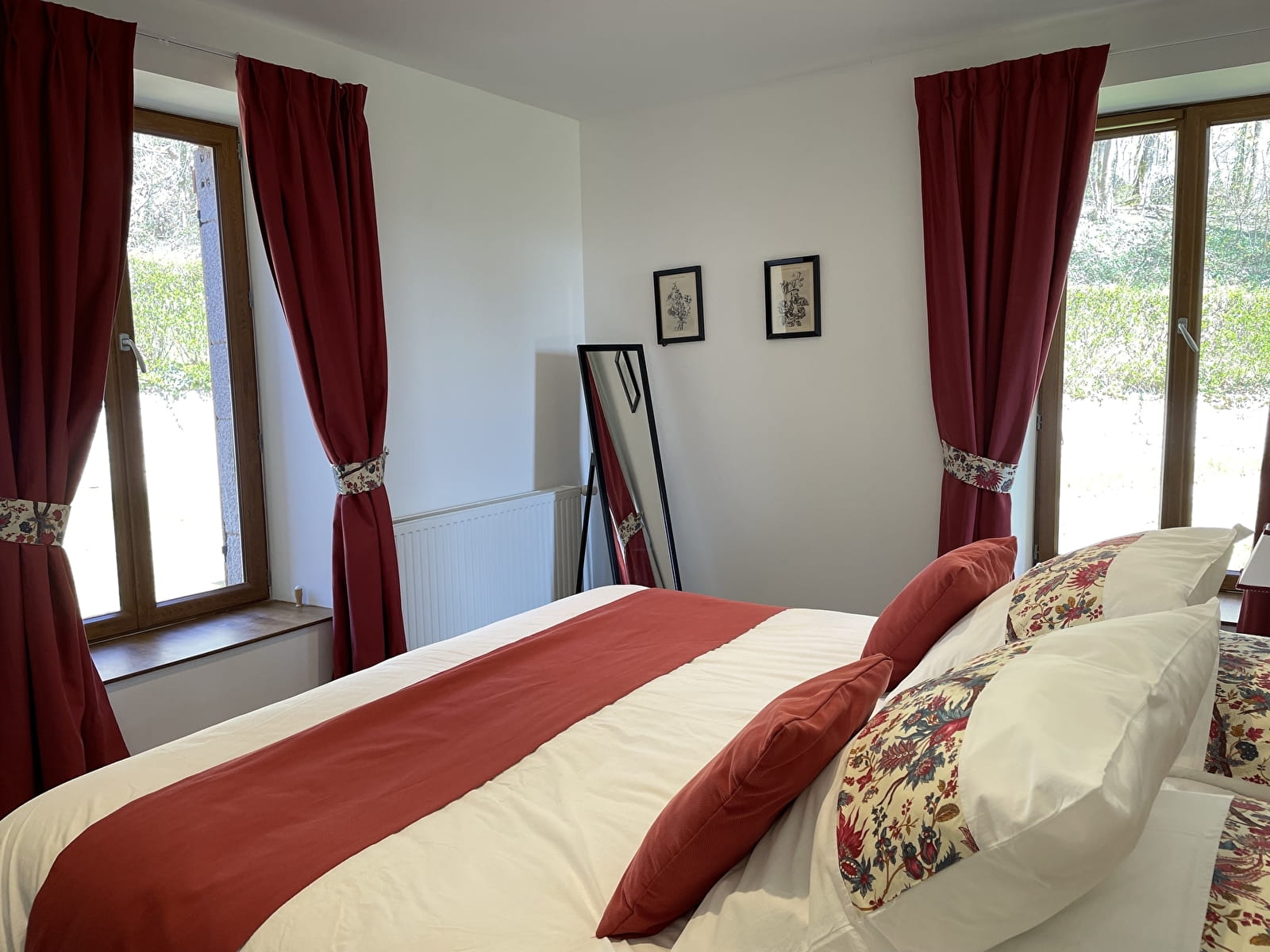 Découvrez à l’étage deux chambres supplémentaires. Chaque chambre possède sa propre salle de bain. Elles retranscrivent chacune leur identité autour d’accords colorés et fleuris, et chacune offre une vue unique sur les paysages du Morvan.