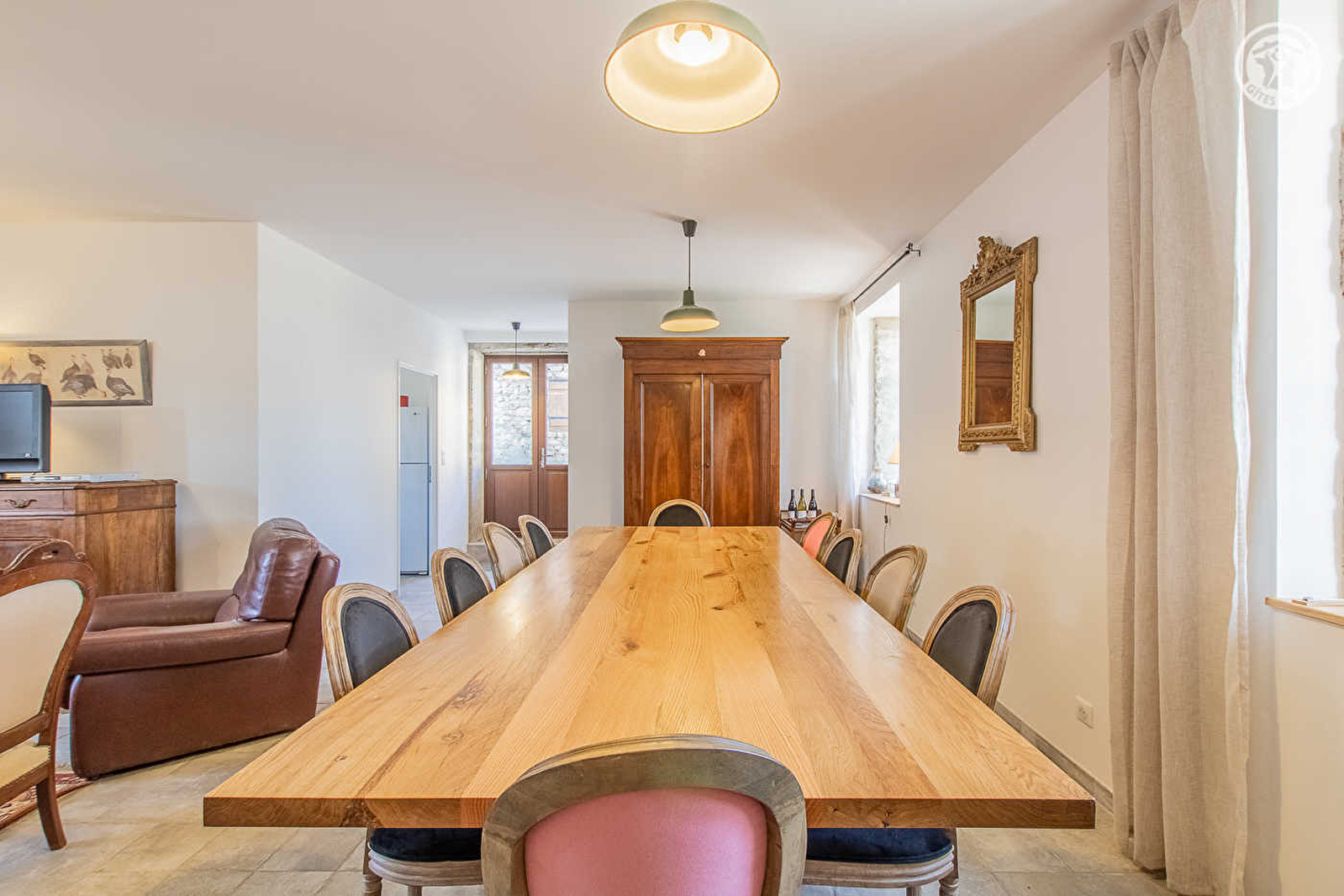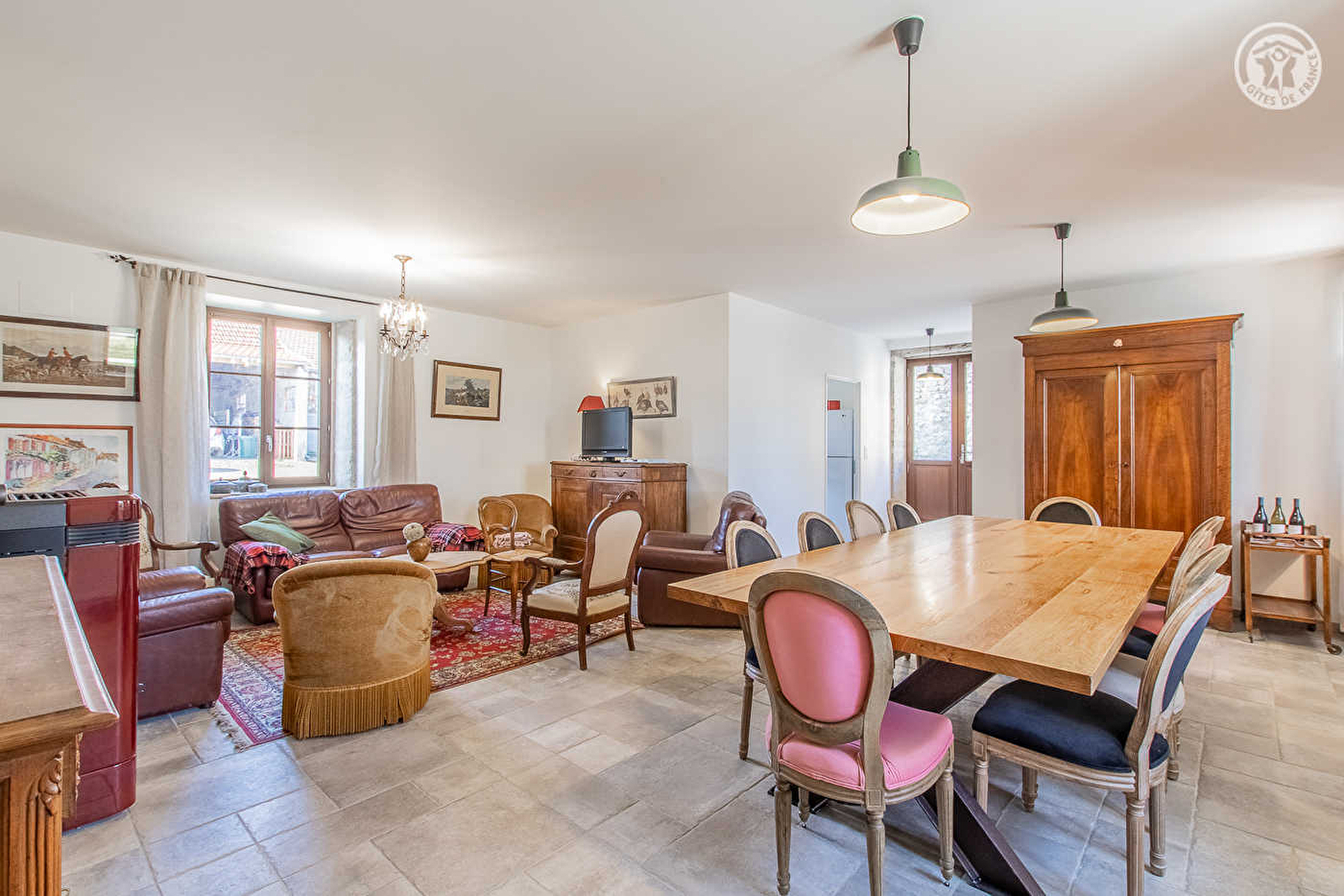Composition : Gîte mitoyen habitation propriétaires (indépendance totale). Chauffage central gaz. Poêle pellets. Wifi. Lave-linge dans buanderie extérieure. Rdc : cuisine semi-professionnelle, séjour-salon, Wc indépendant. 1er ét. : 3 chambres (2 avec lit 2 p. 160x200cm / lit 2 p.140x190cm + 2 lits 1 p. 90x190cm) avec sde privée (douche/WC). Terrasse + terrasse couverte + parking privés. Terrain commun (1700m²). Local vélos. Abri voitures. Commodités 9 km.