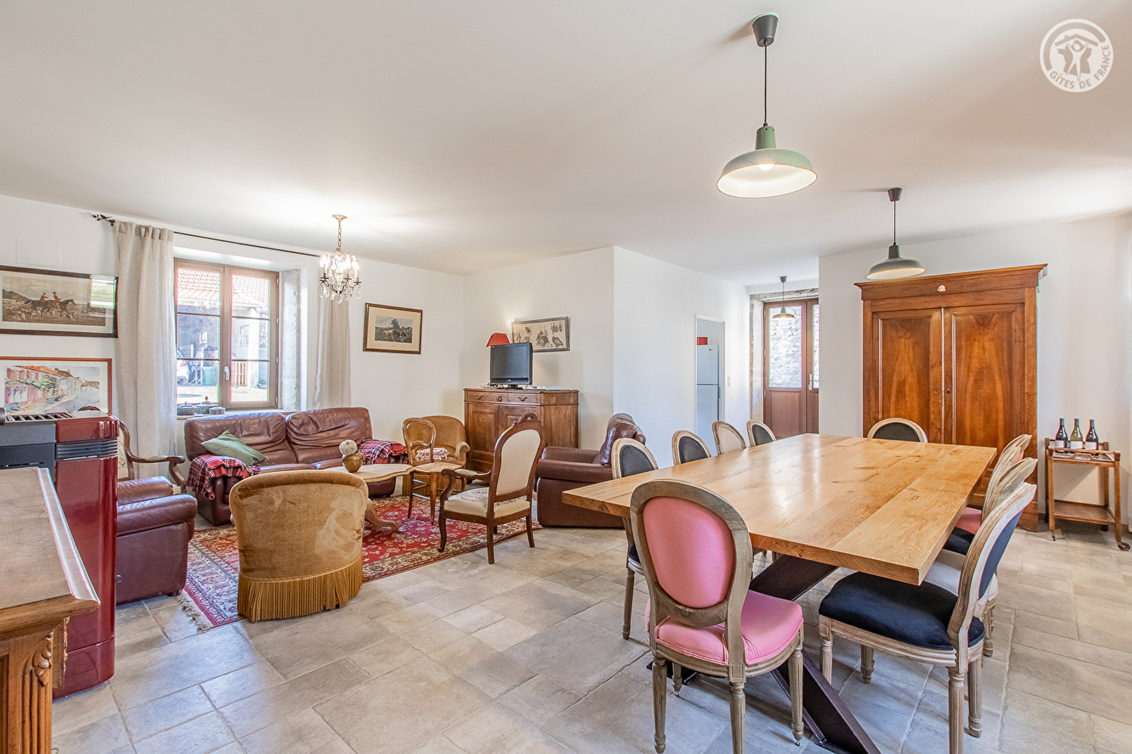 Alain-Philippe vous ouvre les portes d'un authentique château de 1650, élégant édifice de caractère pétri d'histoire restauré dans les règles de l'art, sis au calme au cœur d'un petit hameau rural blotti sur un plateau exposé dominant la campagne environnante. Magnifique écrin champêtre vallonné de collines boisées, lové au cœur du bocage charolais, entre douces prairies & belles forêts sauvages. A deux pas de la cité médiévale du Mont-St-Vincent (église romane du XIIe, remparts, tour de l'Assommoir, ruelles, anciennes maisons, musée archéologique...) lovée sur les flancs du mont éponyme, belvédère unique offrant un somptueux panorama à 360° sur 14 départements, du Mt-Blanc au Puy de Dôme. Propriété soignée aménagée dans l'esprit d'une "micro-ferme" (poulailler, cages à lapins, chevaux & poneys parqués sur place), offrant un ravissant parc engazonné aux arbres centenaires (avec terrasse privative), un terrain de pétanque, une terrasse couverte et un vaste préau abritant un espace ludique pour les enfants (ping-pong, punchingball et multiples équipements de loisirs & jeux). Spacieux gîte de grand confort. Chaleureux cachet "bourgeois" cossu et raffiné (meubles & accessoires déco de style), sublimé par une restauration patrimoniale très soignée (majestueux escalier en pierre, murs en pierres & briques, linteaux en pierres, verrière en bois d'origine…). Beaucoup de charme & caractère. Ambiance douce & dépaysante d'une demeure chargée d'histoire.