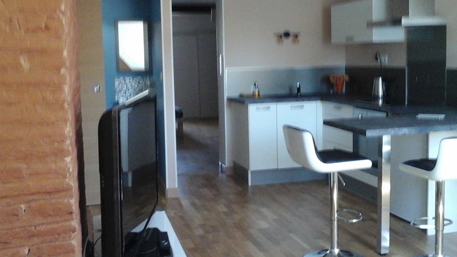 Appartement de type 2 style contemporain entièrement neuf comprenant : chambre lit double avec placards, salon avec canapé convertible, tv grand écran, salle d'eau avec lave linge, wc séparé, cuisine équipée avec vaisselle, four, plaque induction, réfrigérateur, cafetière, bouilloire... accès privé. Situé plein centre de ville, accès tous commerces, facilité de parking. Linge de lit et toilettes fournis