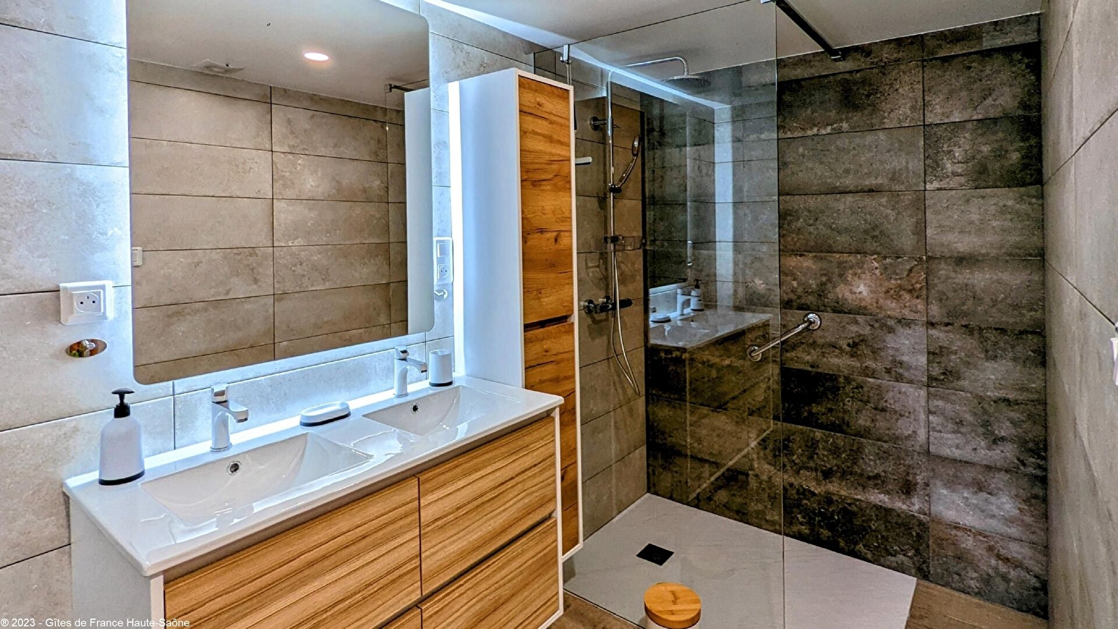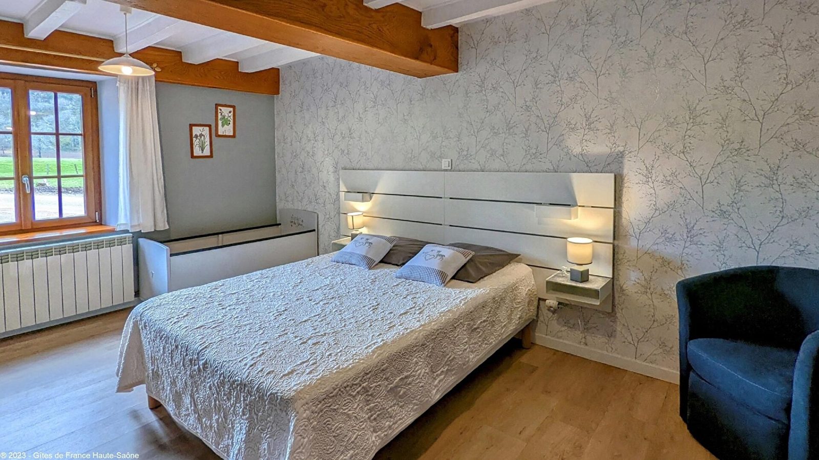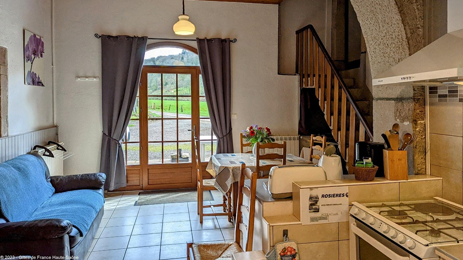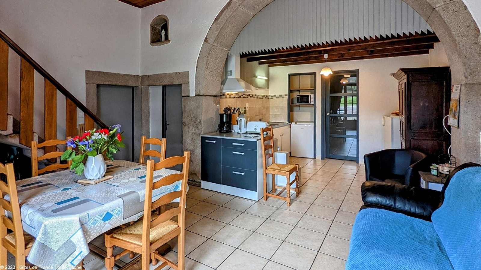 Au village, gîte aménagé dans une ferme rénovée indépendante comportant également le logement du propriétaire et comprenant au RDC : séjour/coin cuisine/coin salon, 1 ch. (1 lit 2 pers), salle d'eau, wc.