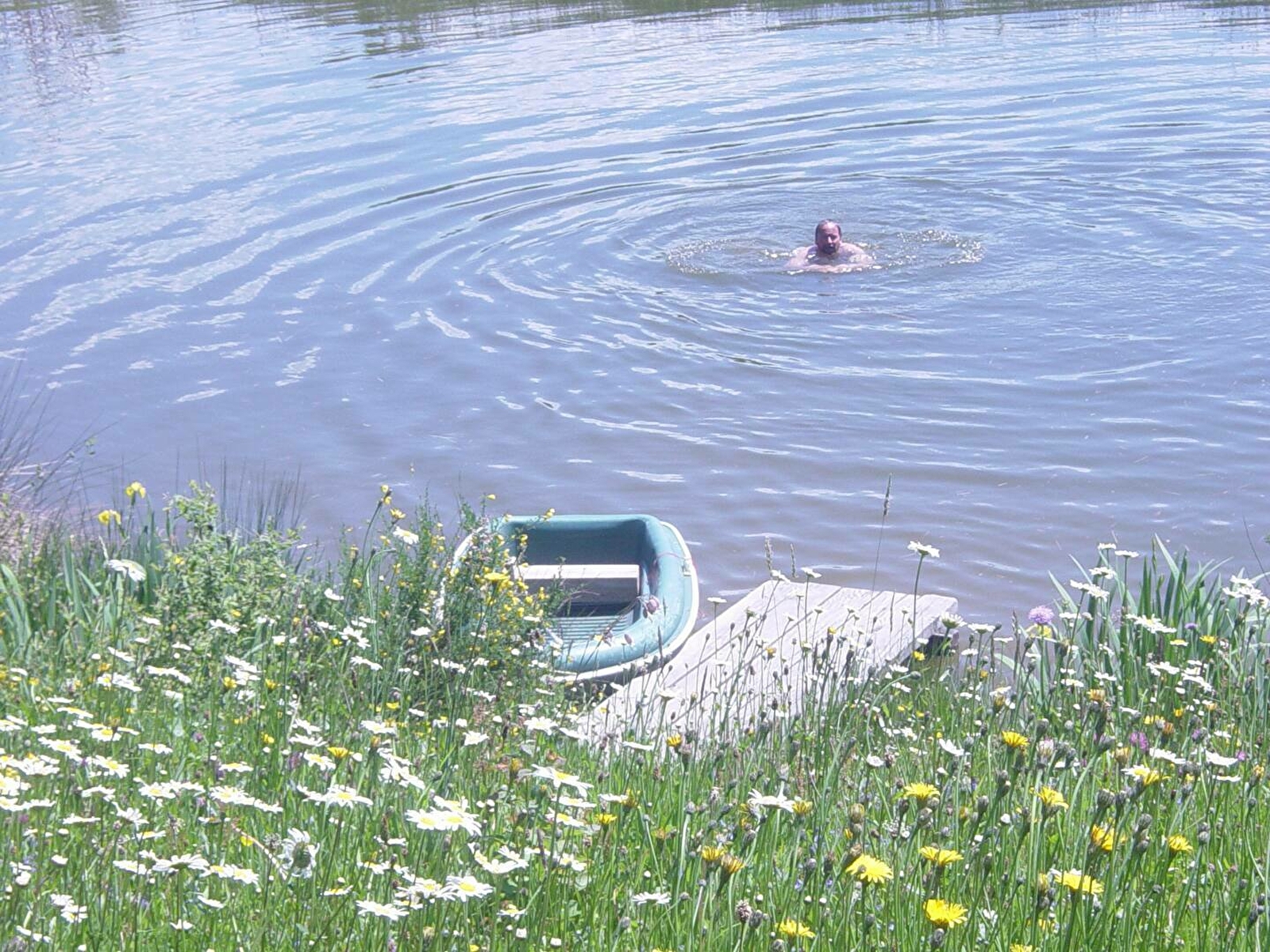 Chez Gustave, du nom du dernier habitant de la maison, était le grenier à foin de plain pied et situé dans le haut de la maison. Une chambre est totalement séparée (2 lits single), l'autre est une alcôve (grand lit double) se trouvant dans le séjour. Celui-ci est équipé d'un poêle cheminée, d'un salon, d'un espace repas et ouvre directement sur la terrasse couverte et le jardin, un peu plus loin le verger, le biotope, les étangs. Salle de bain avec douche, wc séparé et cuisine équipée.