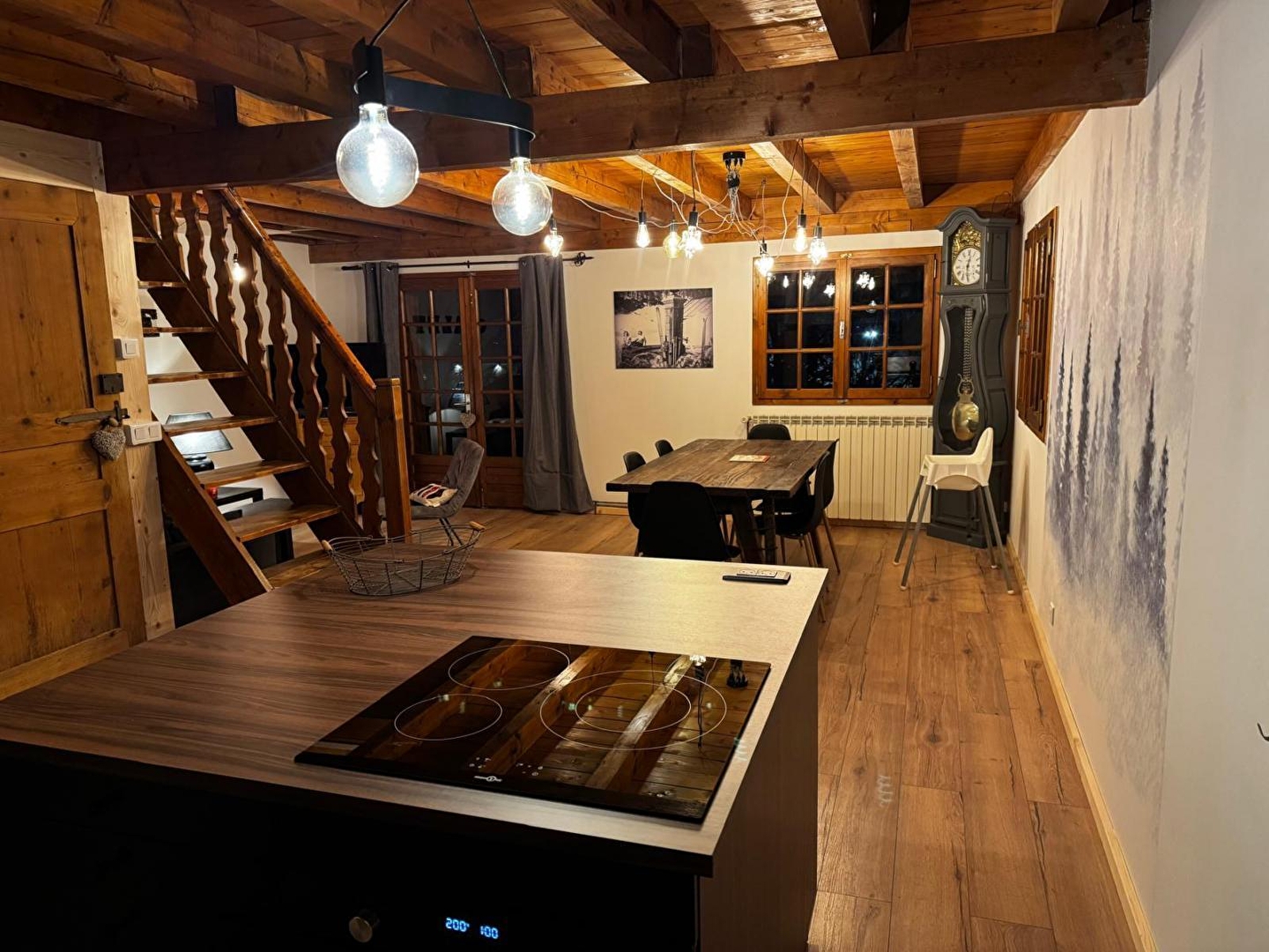 Cet appartement (mitoyen à un autre appartement en location) entièrement rénové se compose au RDC d'une pièce de vie avec coin cuisine toute équipée, espace salle à manger et salon avec canapé et TV, salle d'eau avec douche et WC indépendant. A l'étage, 2 chambres, l'une avec 2 lits simples (90*190) et la seconde avec 1 lit double (160*200) et 1 lit simple(90*190). Côté extérieur, accès au balcon par le séjour et terrain attenant non clos en commun avec les autres gîtes : salon de jardin, transats et barbecue. A 500m du centre du village, Proche des commerces, à 300m de l'arrêt des navettes gratuites qui vous déposeront au pied des pistes, venez goûter au charme des demeures de montagne, du bois et de la décoration typique des hauts plateaux.