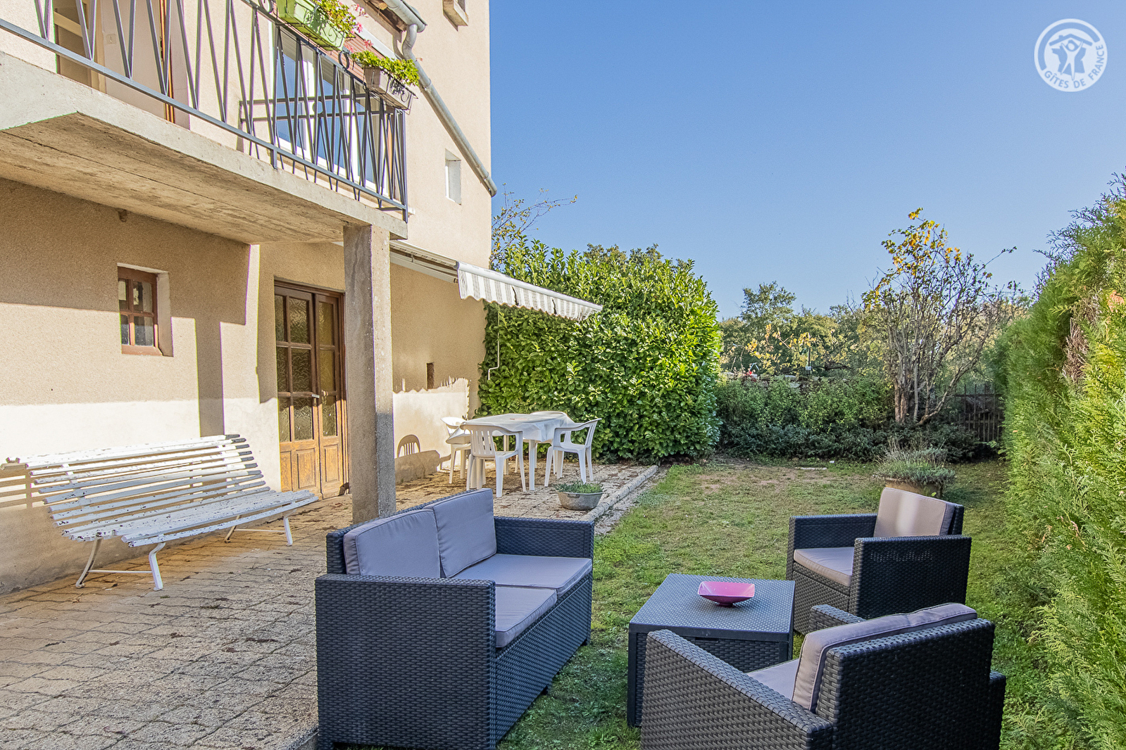 Propriétaires de chevaux parqués sur place, Françoise et Pascal vous ouvrent les portes d'une ravissante maison de pays de caractère du début 20ème siècle dotée d'élégantes tours lui conférant un charme unique - maison de famille soigneusement revisitée en douce villégiature - blottie au calme en pleine campagne clunisoise, au sein d'un petit hameau rural juché à flanc de coteau sud bien exposé à deux pas du cœur du paisible village typique de Saint-André-le-Désert (ayant pour particularité d'abriter une insolite reproduction de la Grotte de Lourdes). Tranquillité totale lové au creux d'un magnifique écrin champêtre vallonné, en lisière immédiate de bocage & pâtures sous les crêtes boisées d'un vaste massif forestier sauvage (à parcourir lors de reposantes balades à pied ou VTT). Cadre & site 100% apaisant, littéral havre de paix & repos. Spacieux gîte de bon confort. Ambiance chaleureuse & dépaysante d'une ancienne demeure, un brin "vintage", en partie relookée dans un esprit "campagne chic", conjugué à une belle restauration patrimoniale (poutres avec plafonds à la française, imposant manteau de cheminée en pierres, charpente…. d'origine). Agréable jardinet clos engazonné, végétalisé et fleuri dotée d'une large terrasse exposée & d'un espace détente "outdoor" (canapés & fauteuils). Très belle vue dégagée sur la douce campagne environnante.