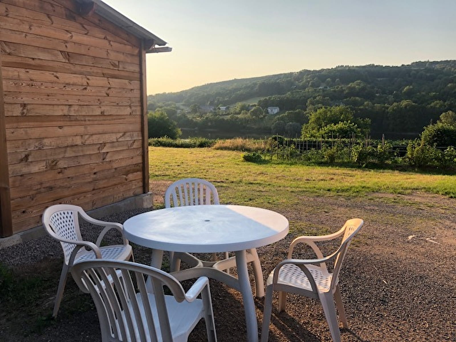 - d’une grande cour privée avec salon de jardin, chaises longues et barbecue et d'un pré attenant