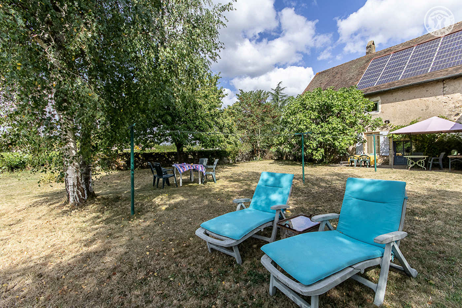 Issus d'une historique famille de vignerons installée sur place depuis 1830, Fernand & Catherine vous accueillent au sein d'une authentique longère bourguignonne de caractère de 1798, intégralement restaurée dans les règles de l'art & chargée d'histoire (jadis "maison de maitre" d'un notable local), sise au calme sur leur domaine viticole familial exploité en agriculture biologique (AOC Maranges Côtes de Beaune / dégustations & visites possible sous les anciennes caves voûtées multi-centenaires de la bâtisse). Au sein d'un hameau résidentiel dominant le pittoresque village viticole de Cheilly-les-Maranges, blotti le long du Canal du Centre aux confins des rivières Cosanne & Dheune. Magnifique écrin paysagé alentour (protégé en "Zone Natura 2000" & ZNIEFF pour ses richesses faunistiques & floristiques), lové au creux de la vallée des Maranges & sa bucolique campagne vallonnée conjuguant coteaux de vignobles, prairies boisées & belles forêts sauvages. Site de toute beauté. Superbe vue dégagée sur les vignobles & la campagne environnante. Spacieux gîte de bon confort. Chaleureux cachet campagnard marié à une belle restauration patrimoniale (manteau de cheminée, tommettes, poutres… d'origine). Beaucoup de charme & caractère. Ambiance douce & dépaysante d'une authentique demeure de campagne. Large terrasse exposée & ombragée (en partie abritée) ouvrant sur un agréable grand jardin soigneusement engazonné & arboré, bordés d'historiques murs en pierre sèches, niché à l'abri des regards en lisière du vignoble.
