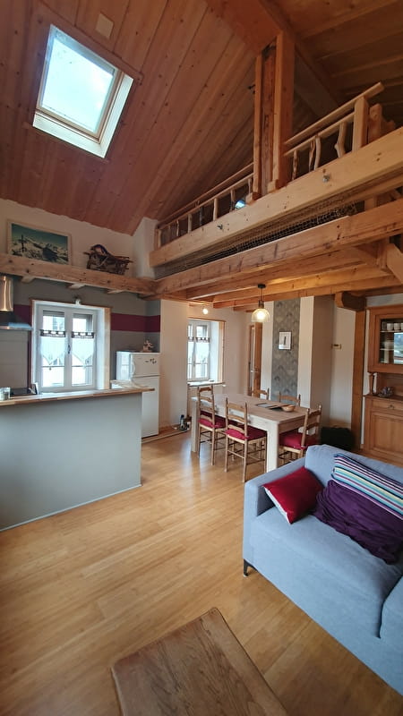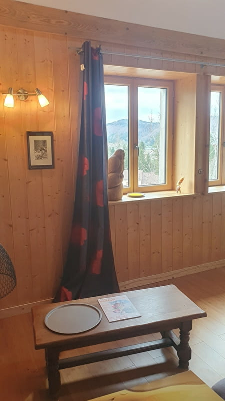 Appartement au 1er étage dans maison au centre du village des Bouchoux, au pied de la croix des couloirs, situé dans le Parc Naturel du Haut-Jura. Agréable, lumineux, bien équipé, idéal pour passer un moment de détente, ainsi que pratiquer la randonnée pédestre, le VTT et le ski nordique et ski alpin à 8 km l'hiver.
