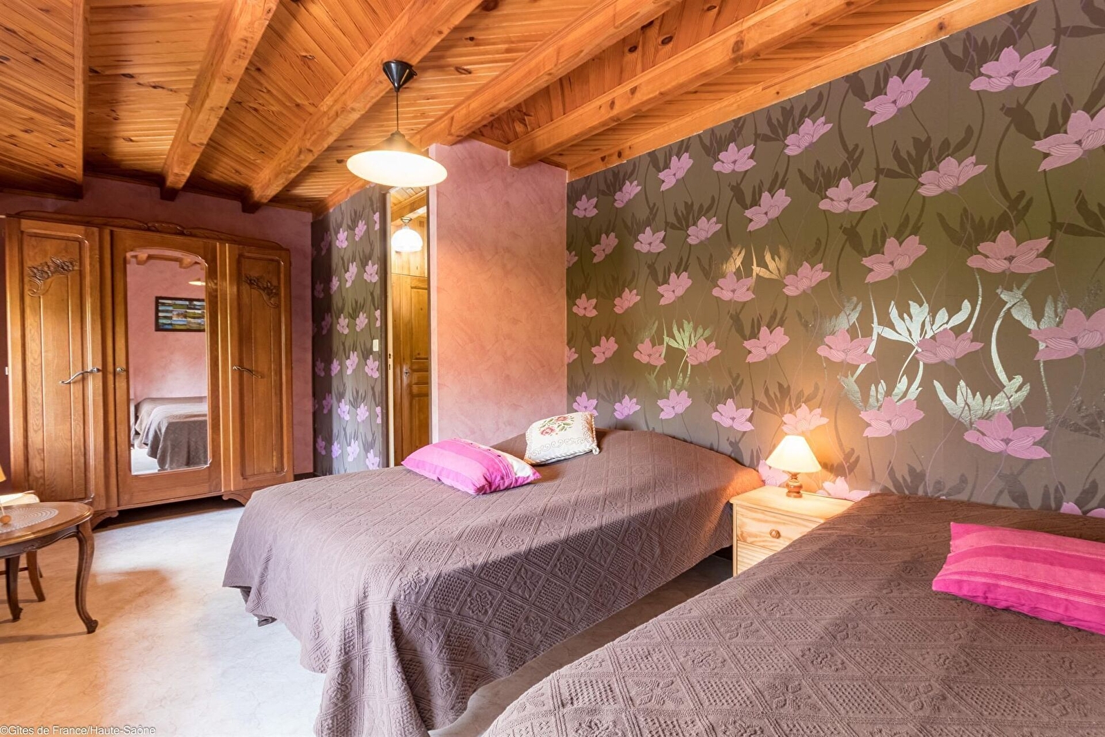 -À l'étage : une chambre avec deux lits de 140. Une chambre avec un lit 140 et un lit bébé.