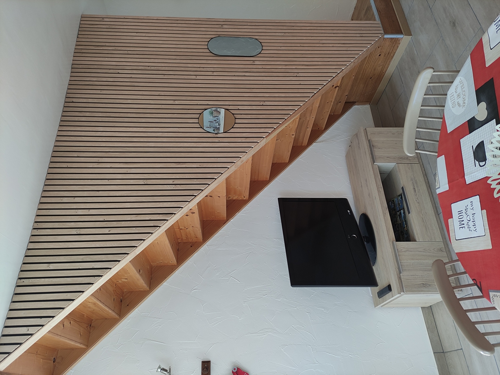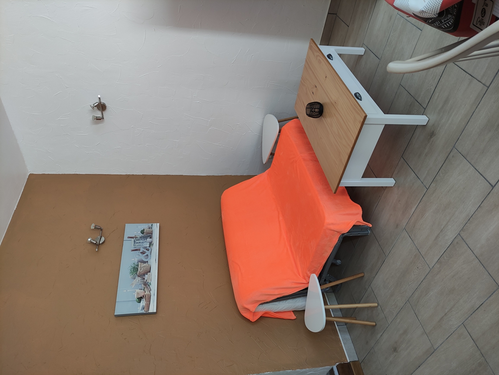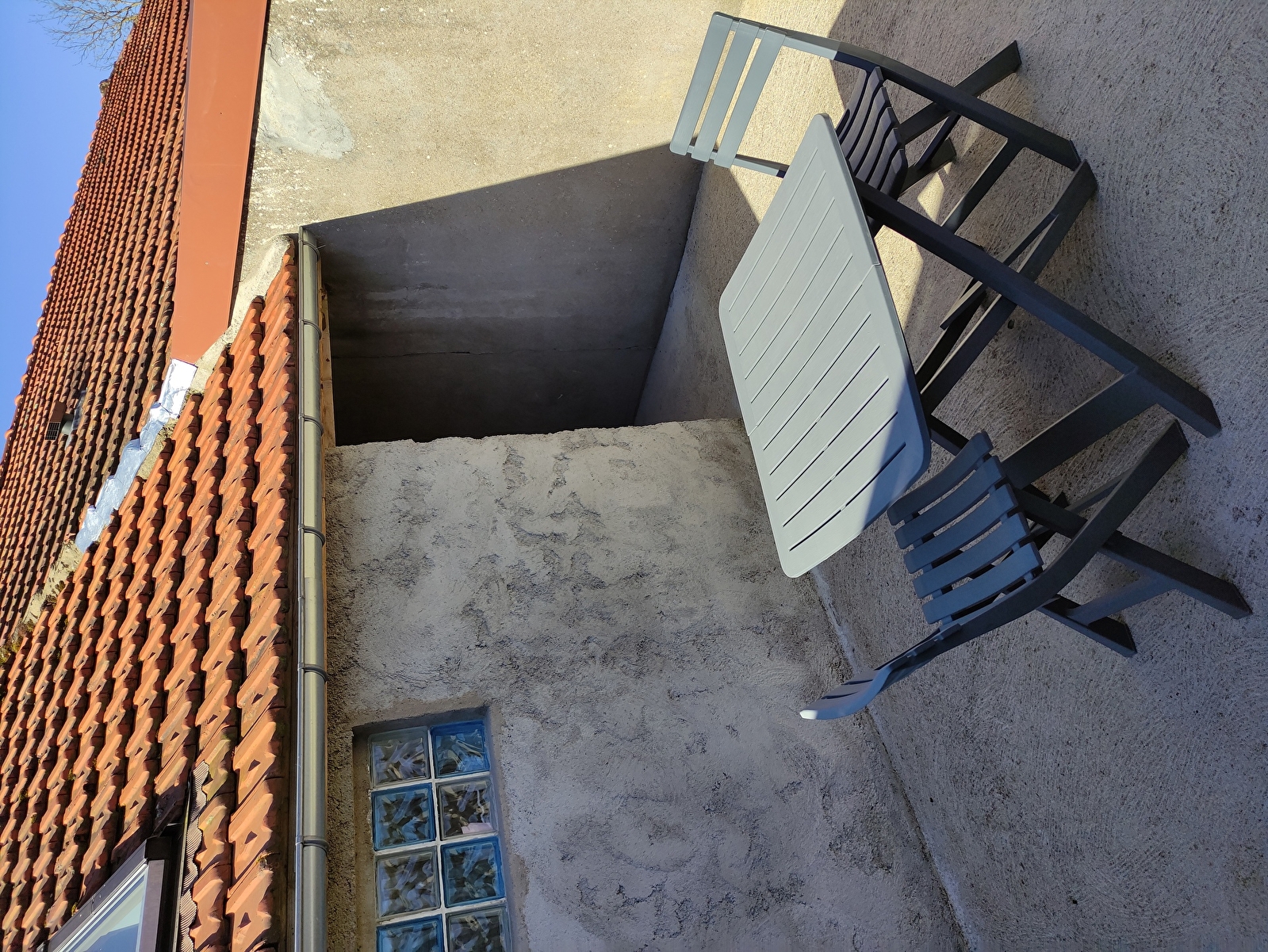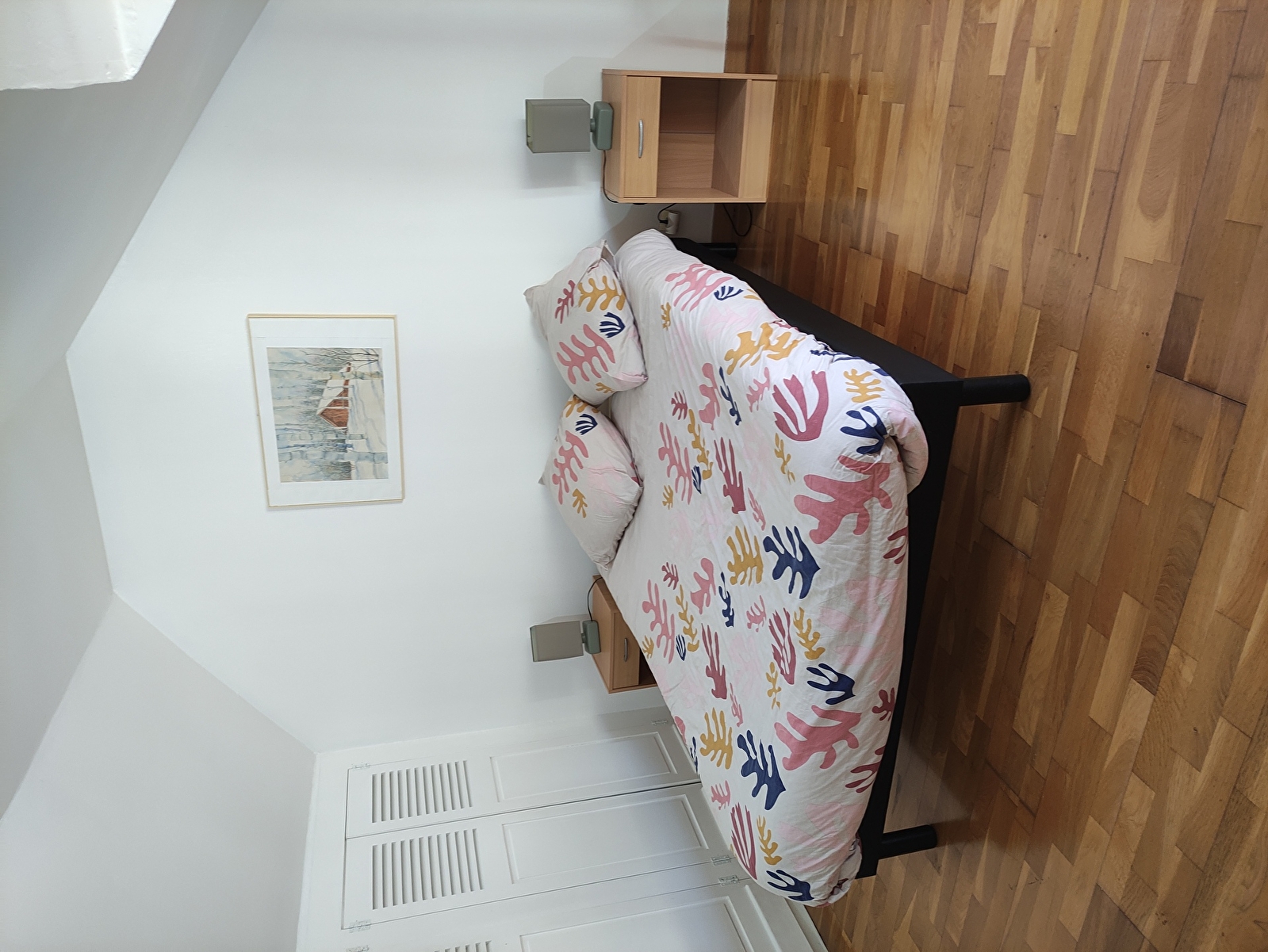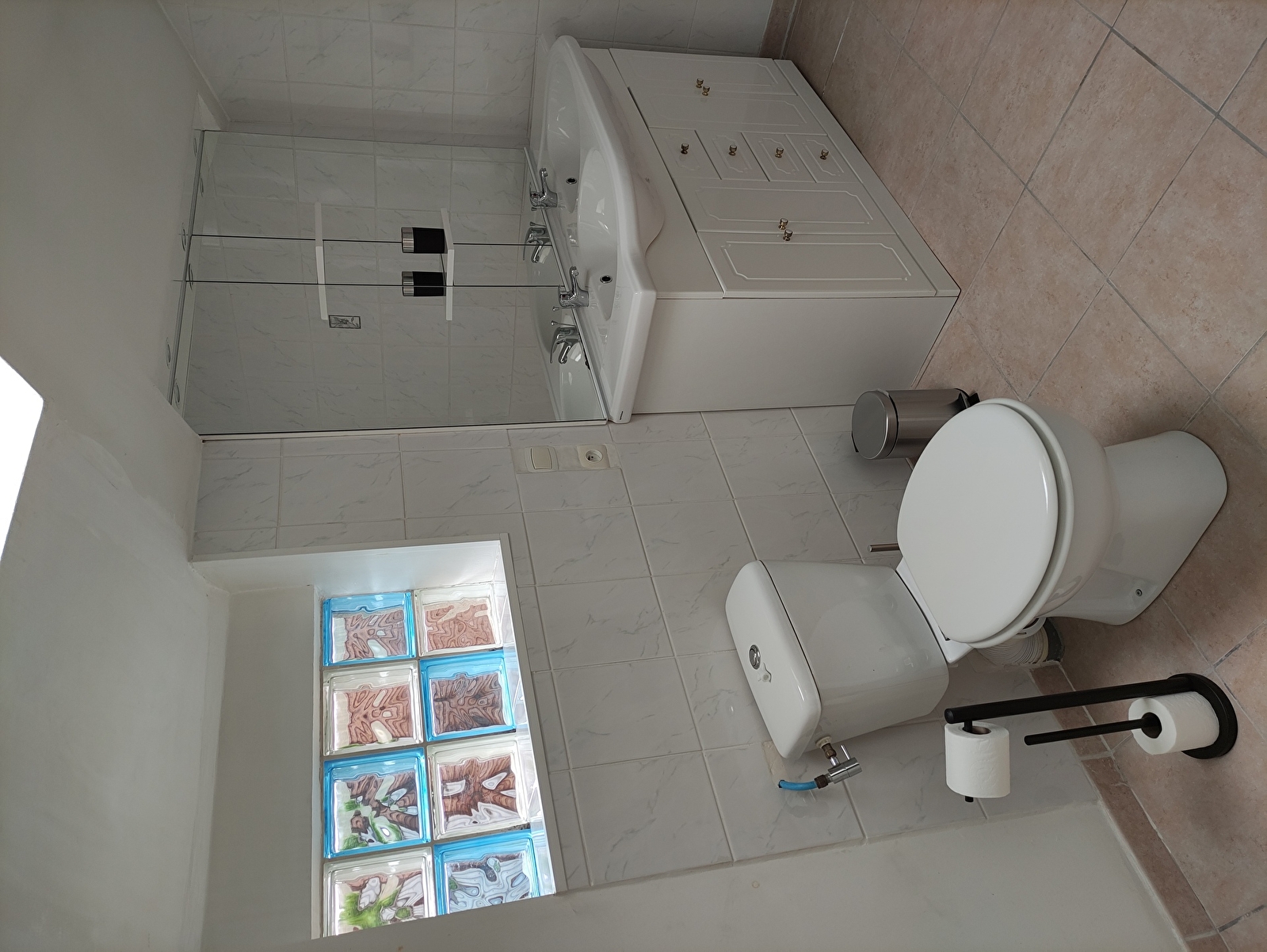 Une salle d'eau avec une de douche, un lavabo double, une machine à laver, un séchoir. Sortie sur une petite cour privée close, sans vis à vis. Au premier étage : une vaste chambre, lit de 140x190, tables de nuit avec lampes de chevet, 2 couettes, 4 oreillers. Les draps et serviettes de toilette sont fournis. Nécessaire pour nettoyage fourni, le ménage est en supplément. Possibilité de se garer devant la maison (gratuit). Volets roulants solaires.