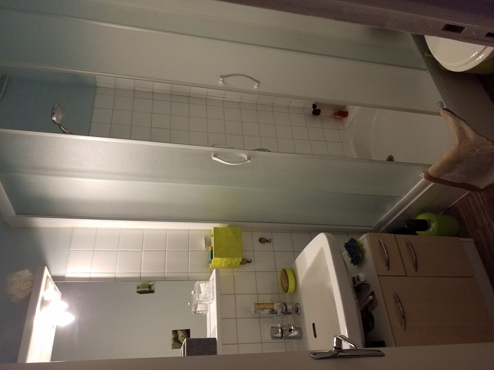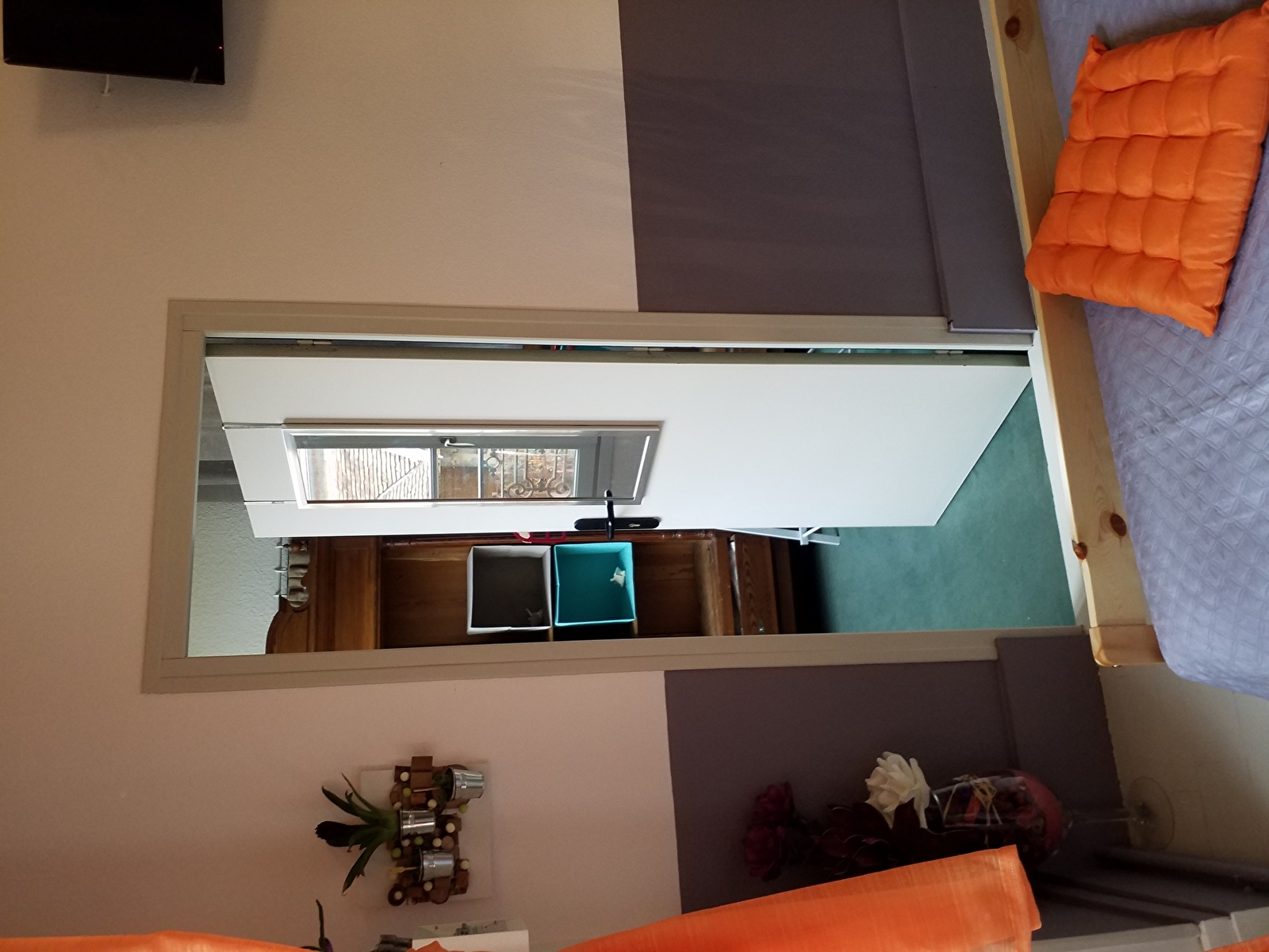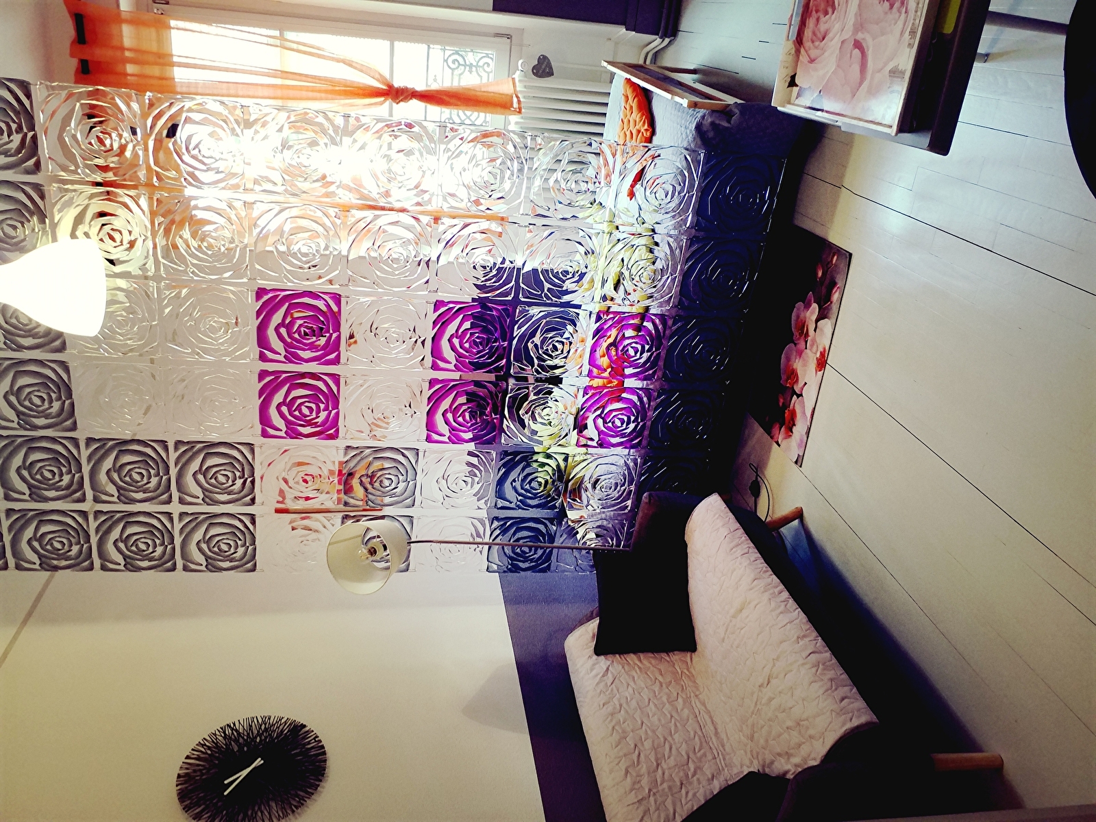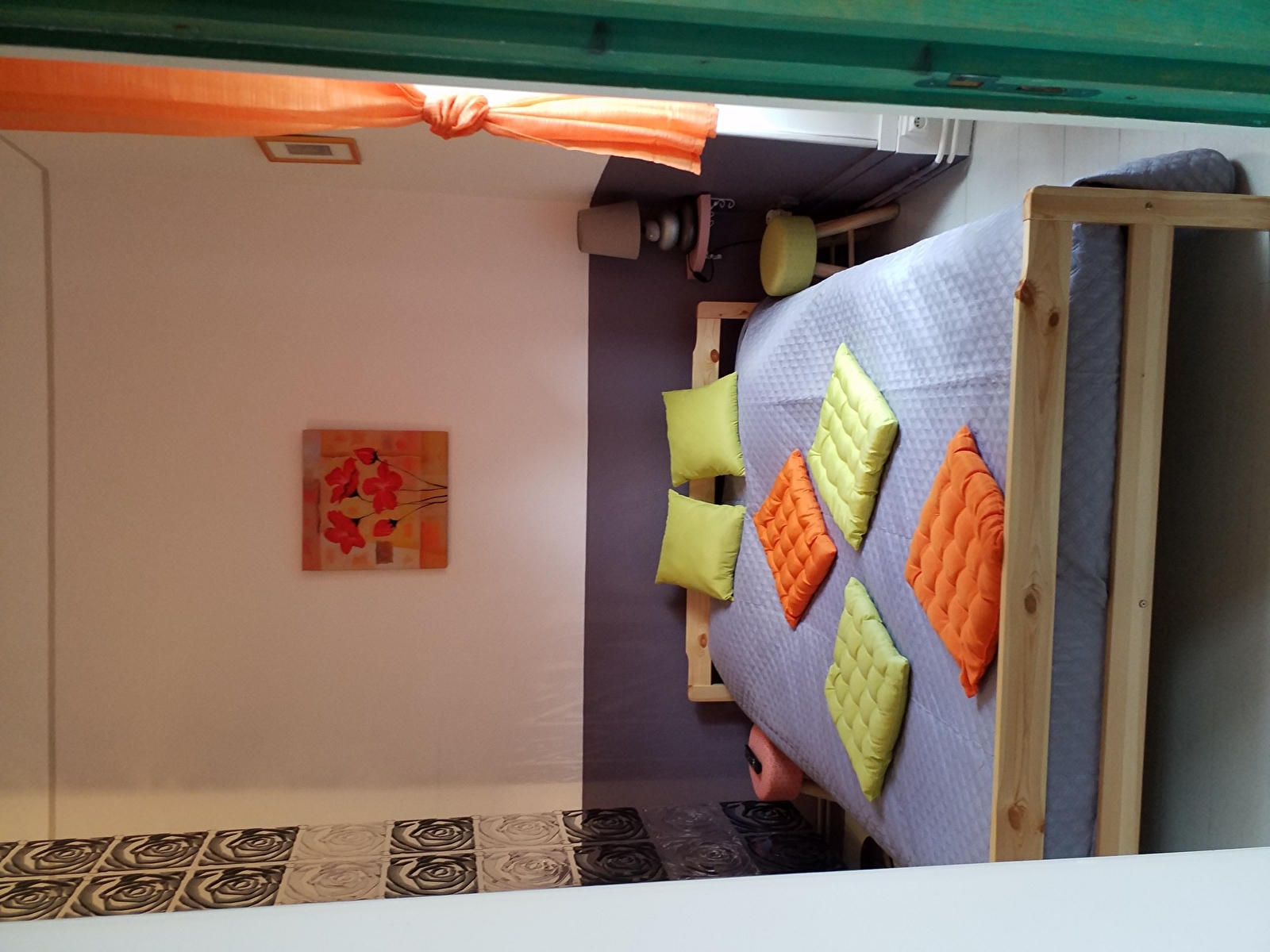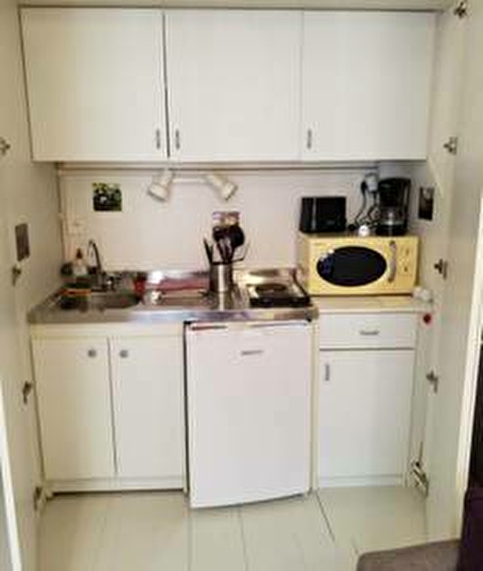 Il est composé d'une petite entrée avec porte bagages, porte manteaux et miroir ; salle d'eau avec WC, d'une pièce de vie séjour avec espace pour cuisiner et un espace chambre, plus une verrière servant de dressing.