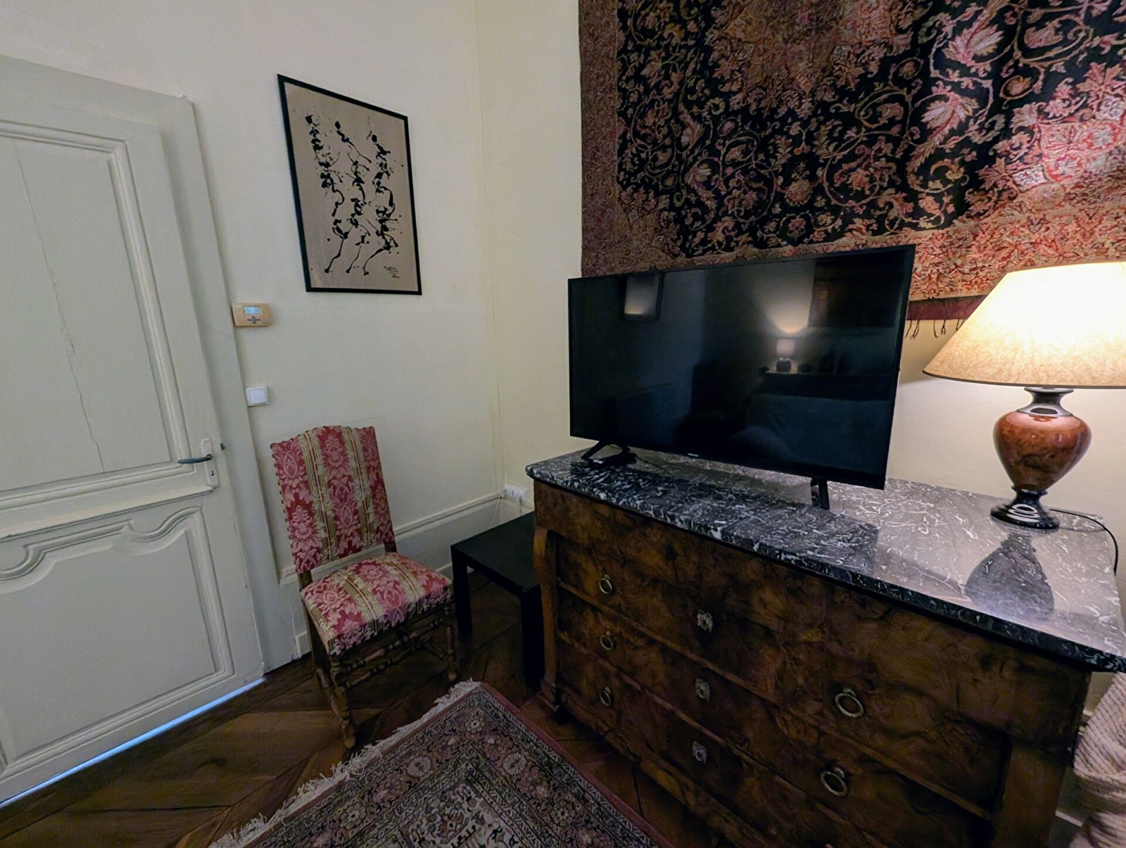 Au cœur du centre historique de Vesoul, vous séjournez dans un bel appartement situé à l'étage d'un hôtel particulier du 18ème siècle : l'hôtel Lyautey de Genevreuille, inscrit au patrimoine des Monuments Historiques, faisant face à l'hôtel Thomassin, célèbre maison du vieux Vesoul, pour sa magnifique façade. Il comprend : un salon, une chambre (1 lit 120/190), une chambre (1lit 140/190), (un lit bébé peut vous être mis à disposition). Nombreux rangements. Une cuisine équipée. Une salle d'eau - Wc. Parking privatif dans la cour commune et fermée par un portail en fer forgé. Pour votre confort, linge de lits et lits faits à l'arrivée, inclus. Charges comprises. Internet WIFI avec la fibre.