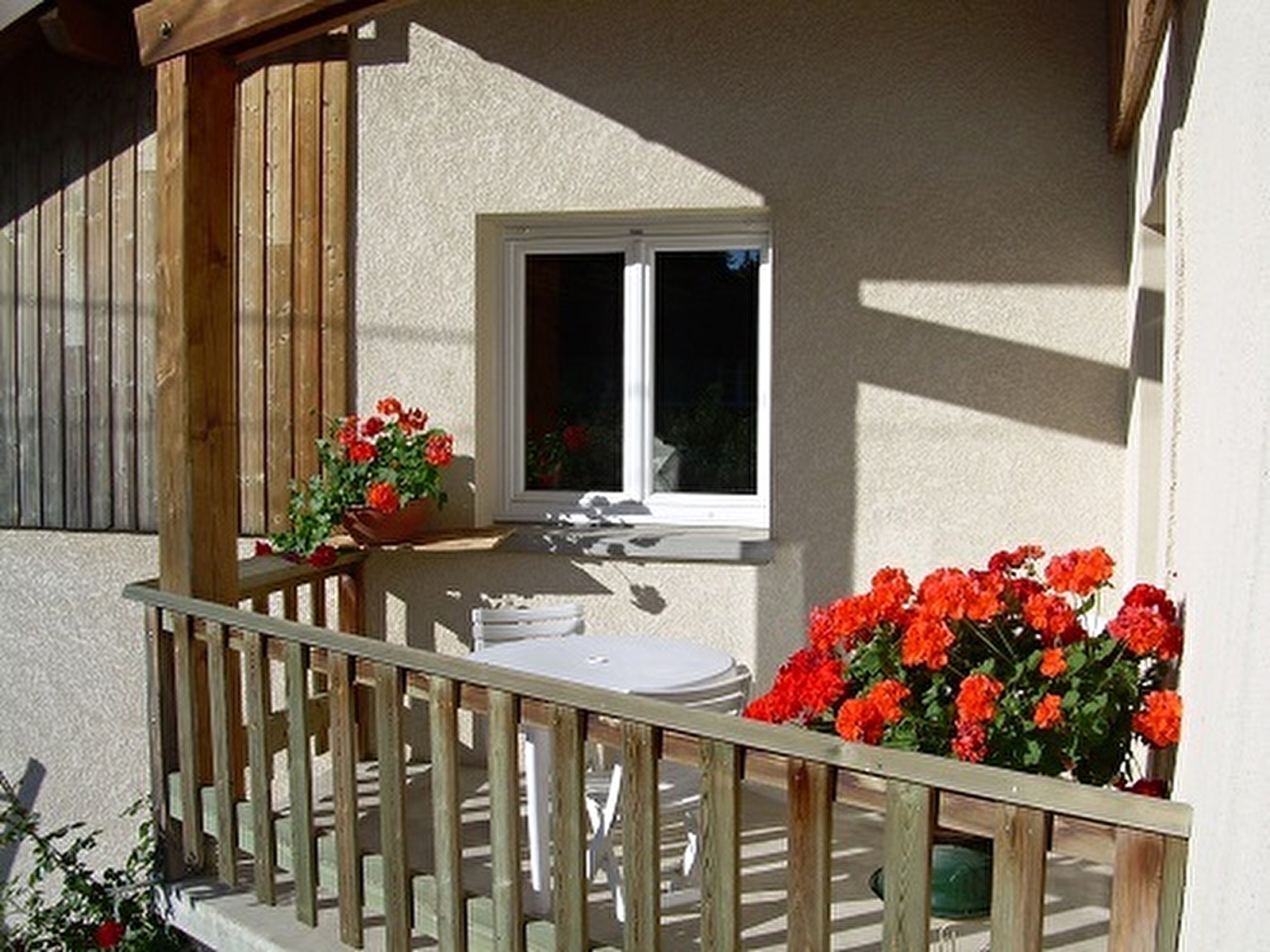 Gîte aménagé au 1er étage de l'habitation des propriétaires. Belle vue. Hall d'entrée indépendant. Espace nuit séparé par une cloison coulissante. 2 balcons. Vaste terrain partiellement clos, commun aux 3 gîtes. Garage et parking privés.