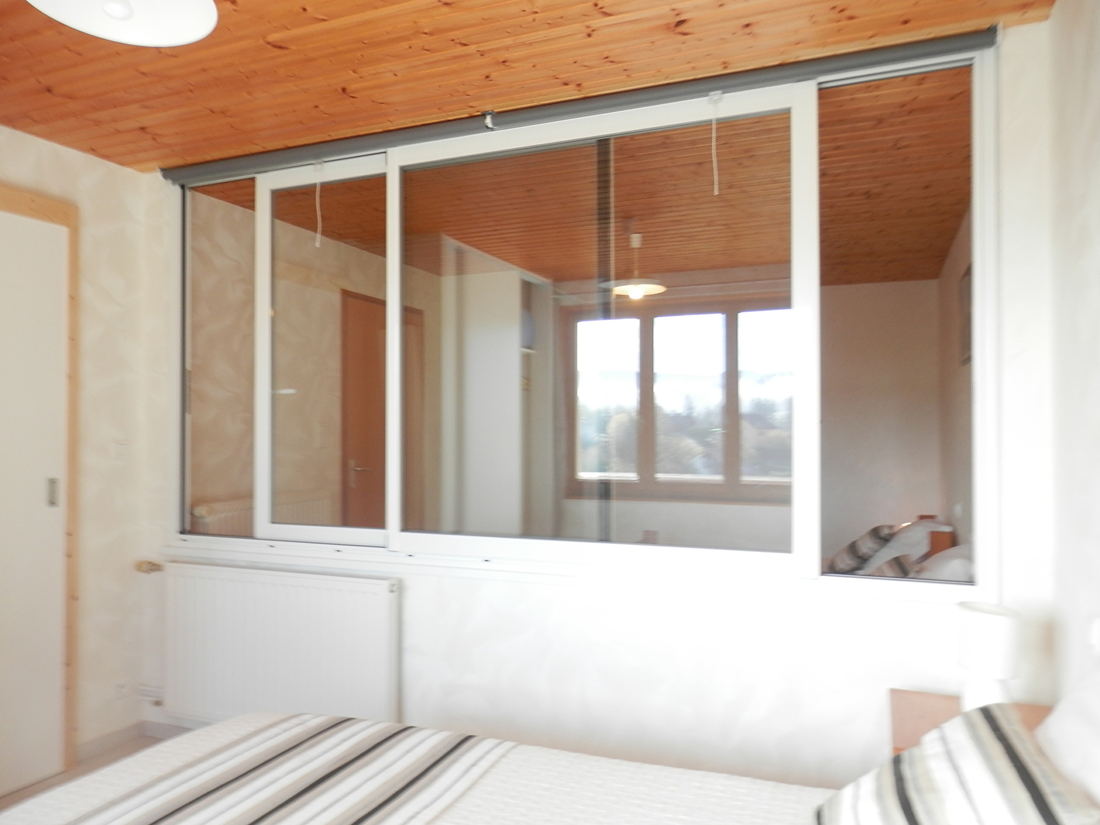 Gîte aménagé au 1er étage d'une jolie maison mitoyenne à celle des propriétaires comprenant également un autre gîte rural. Belle vue. Hall d'entrée commun à 2 gîtes ruraux. 2 chambres séparées par une verrière. Vaste terrain partiellement clos commun. Grand balcon, garage et parking privés.