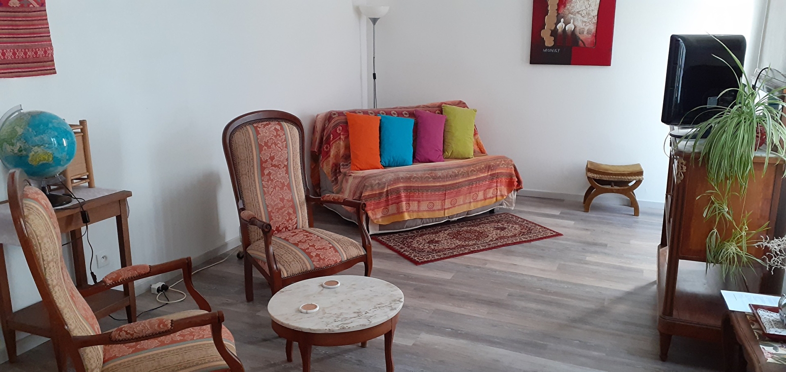 Maison d'environ 50 m2 avec une entrée indépendante, située dans le centre ville. Elle comprend une chambre, un salon, une salle de bain et une cuisine donnant sur une cour intérieure très calme.