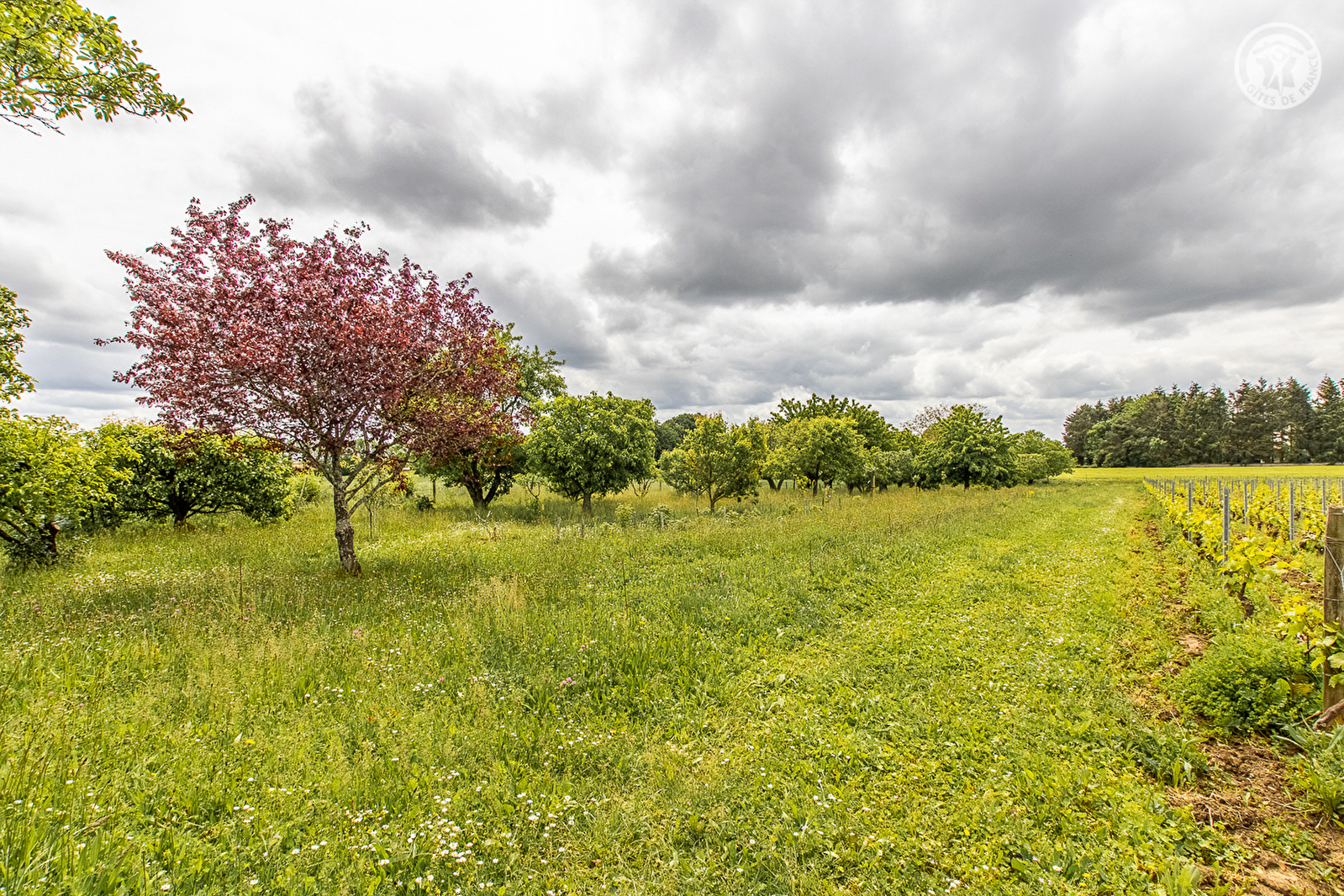 Passionnés de randonnée & nature, Nicole et Yves vous accueillent au sein d'une ravissante authentique maison de vigneron de caractère du 19ème siècle, soigneusement restaurée, nichée sur une vaste propriété familiale de 7000m² chargée d'histoire - ancien domaine viticole dont subsiste un bucolique mini vignoble blotti au pied du gîte - comprenant une prairie naturelle avec verger (cerisiers, pommiers, pruniers, cognassiers, poiriers, pêchers / cueillette possible avec accord des propriétaires) où circulent des poules en liberté en journée, pour le bonheur des enfants ! Secteur résidentiel calme lové au cœur même des superbes vignobles du mâconnais, à deux pas du charmant bourg viticole & commerçant de Charnay-lès Mâcon, citadin & champêtre, doté de son propre AOC, d'un riche patrimoine (dont une église romane classée du Xème toute proche) & de l'intégralité des commodités. Environnement privilégié totalement apaisant, au creux d'un superbe cadre paysagé vallonné de vignes, prairies & collines boisées. Gîte de très bon confort. Ultra spacieux. Chaleureux cachet campagnard aux accents contemporains d'esprit « campagne chic » pétri de charme. Très cosy. Large terrasse abritée jouxtant un agréable charmant jardin intimiste, aménagé & fleuri avec grand soins. Cour privative attenante, terrain de pétanque naturel avec table de ping-pong. Belle vue dégagée sur les vignobles, la campagne environnante & les monts du Mâconnais.