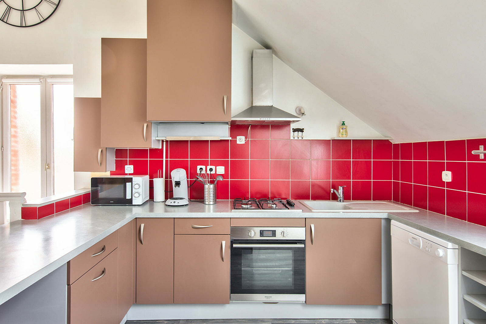 ? APPARTEMENT ÉQUIPÉ : four, micro-ondes, plaques de cuisson, et tous les ustensiles pour cuisiner facilement.