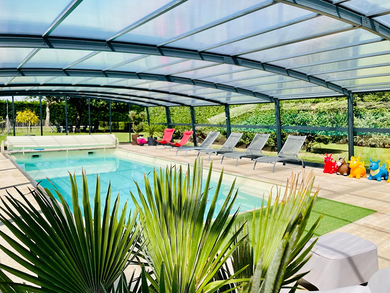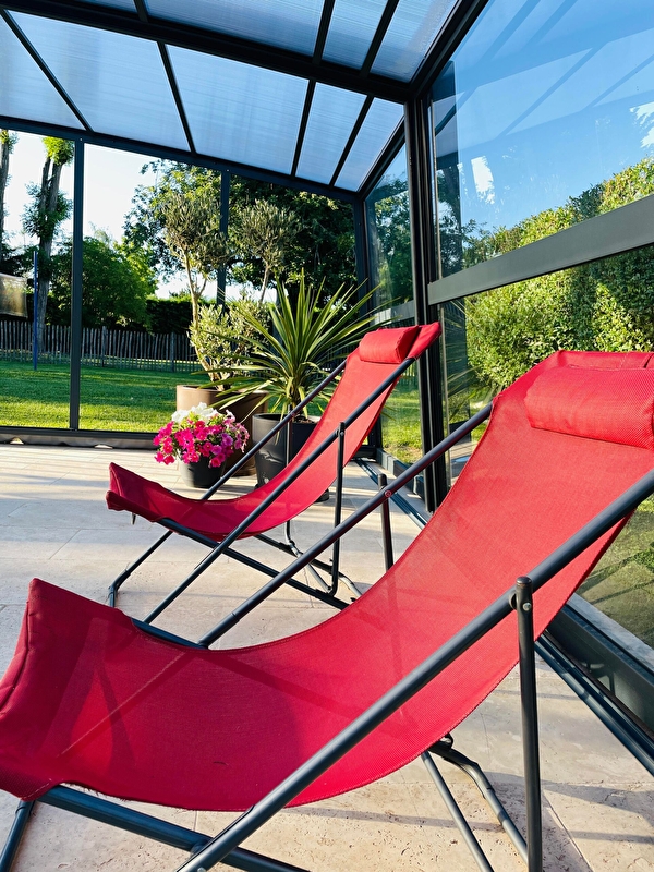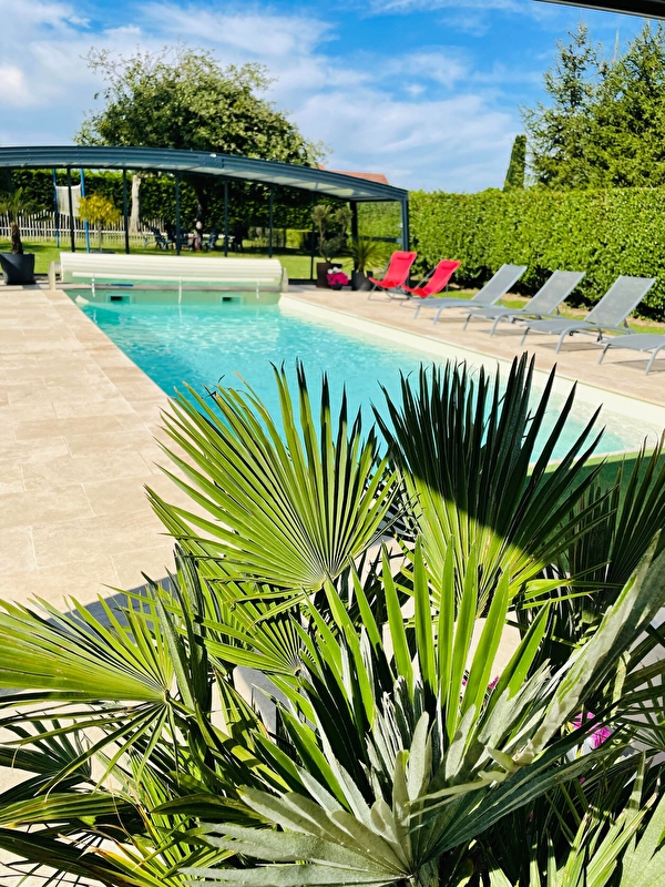 Côté extérieur, vous profiterez du calme, de la piscine chauffée privative de 9,6 x 4 m ouverte à partir de début Avril jusqu'à la fin Octobre (selon les conditions météorologiques), d'une belle terrasse couverte de 100 m² avec grande plancha, ping-pong, baby foot, et jeux pour les plus petits. Animaux non admis.