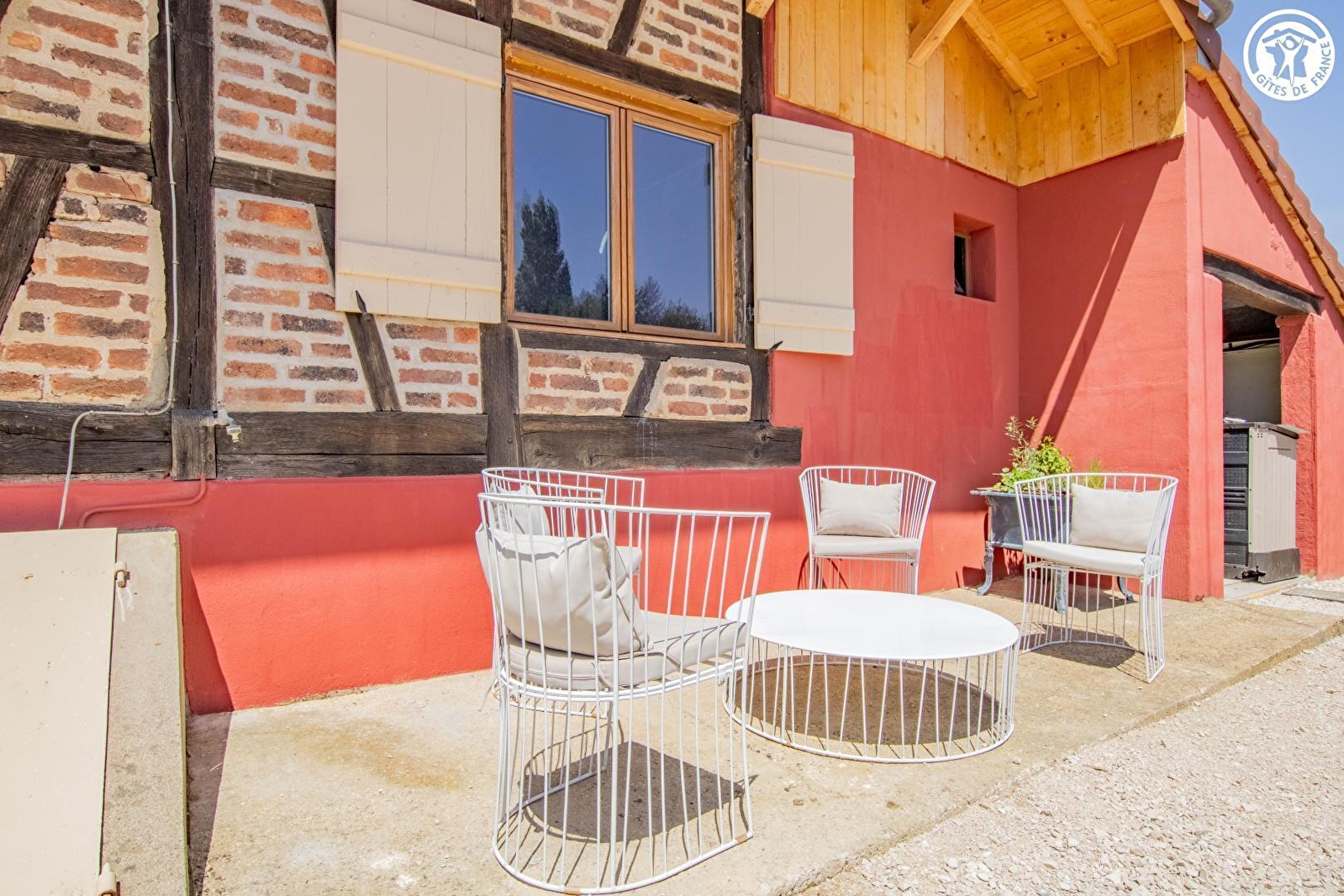 Ravissante demeure bressane de caractère du XIXème siècle d'architecture traditionnelle en briques de pays, soigneusement restaurée, sise au calme en plein cœur d'un paisible & charmant petit village typique, en bordure d'une petite prairie arborée ouvrant sur l'étang de pêche communal directement accessible (carpes & brochets entre autres…). Niché en pleine campagne bressane, au creux de la verdoyante basse vallée du Doubs, non loin des premiers contreforts montagneux boisés du massif du Jura, La Chapelle-Saint-Sauveur profite d'une apaisante douce campagne préservée (en partie protégée en ZNIEFF), conjuguant pleine nature & agriculture, au creux d'une plaine bocagère parsemée de bucoliques étangs & belles forêts sauvages et dispose d'une base de loisirs dotée d'un très réputé plan d'eau "naturel" aménagé en "baignade biologique". Gîte de très bon confort. Spacieux & lumineux. Chaleureux cachet campagnard, un brin "rustique", aux accents contemporains d'esprit "pop" & "jungle". Ambiance zen & très douce. Terrasse privative ouvrant directement sur la piscine du domaine (2x5m / partagée avec les autres gîtes) agrémentée d'un vaste pool-house (avec WC) aménagé en cuisine d'été & mini salle de sport équipée (proposant un vélo elliptique, rameur & appareil pour abdominaux). Agréable jardin naturel en commun, blotti en lisière de champs & d'un petit bois (véritable aire de jeux & d'aventures pour les enfants), comprenant table de ping-pong, balançoire-toboggan & filet de badminton-volley. En bonus : accès à une ancienne cave aménagée en espace détente pour se mettre au frais l'été.