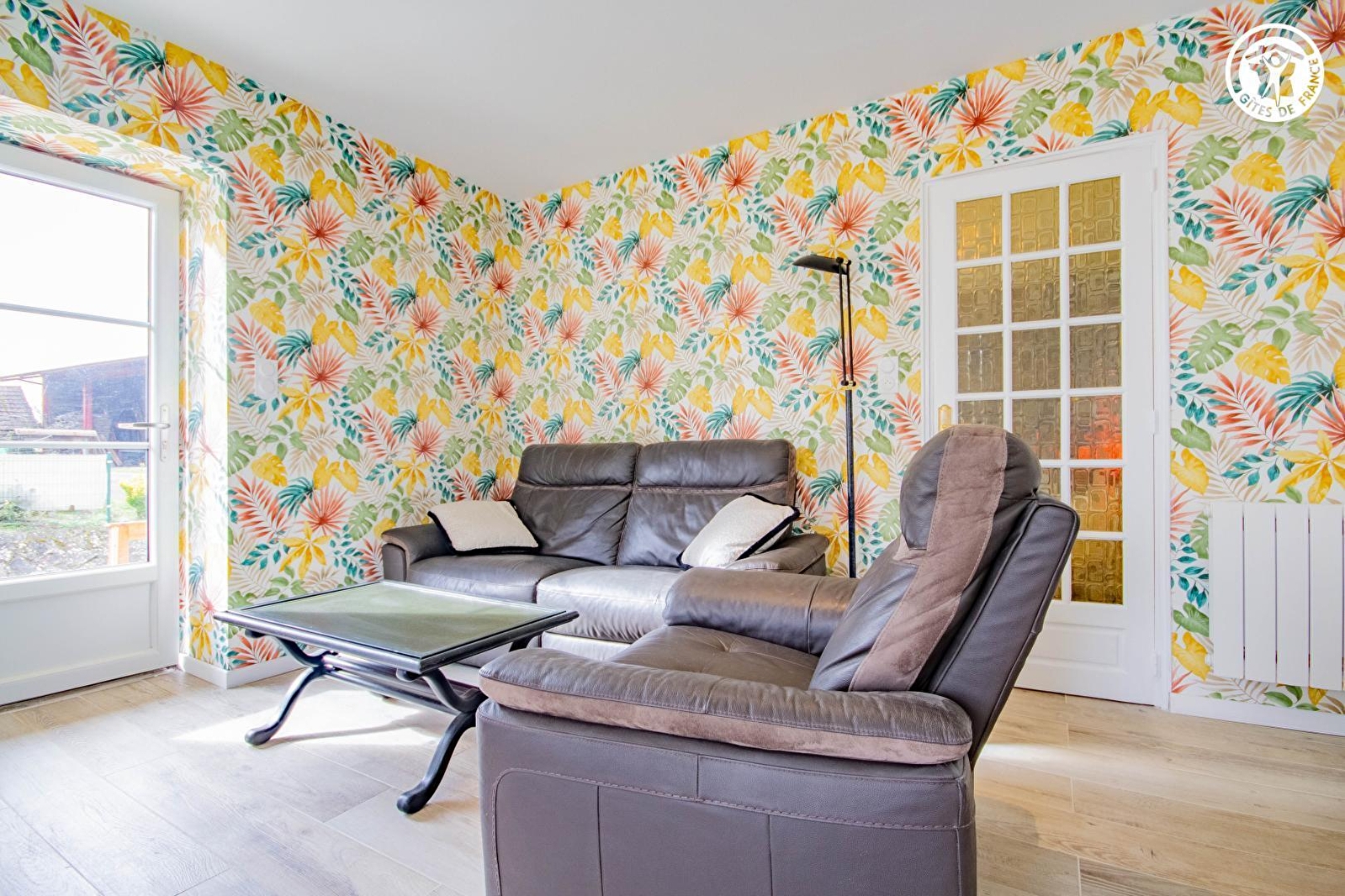 Composition : Maison comprenant 4 gîtes. Wifi (fibre). Chauffage électrique. Gîte au rdc surélevé (2 marches) : cuisine-séjour-salon, 2 chambres (chacune comprenant 1 lit 2 p. 140x190cm), salle d'eau (douche/Wc). Terrasse + parking privatifs. Jardin (ping-pong/balançoire-toboggan/filet de badminton-volley) + piscine (2x5m) & pool-house + cave en commun. Commerces dont supermarchés 6 km.