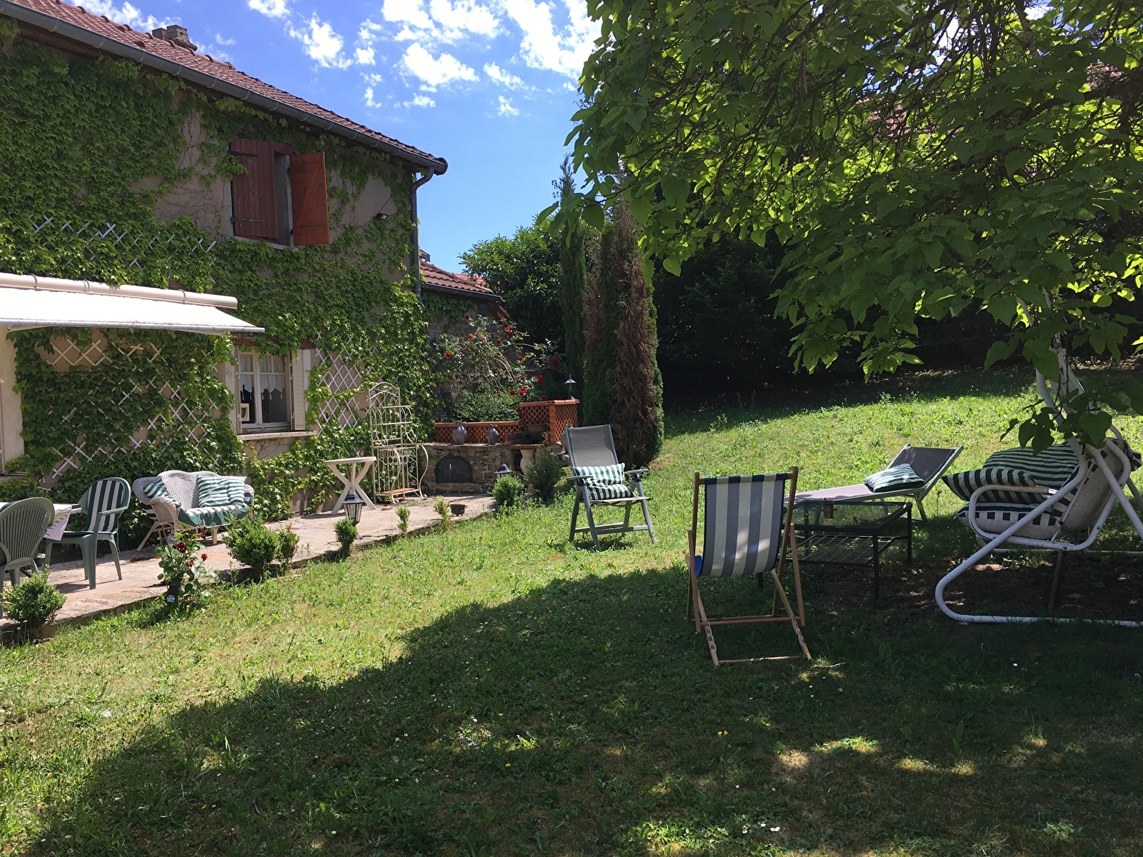 Le jardin est équipé d’une grande table sur la terrasse et d’un coin barbecue. Un salon de jardin est installé sous les arbres. Au fond du jardin, un portique et une table de ping-pong. Possibilité d'un abri vélo.