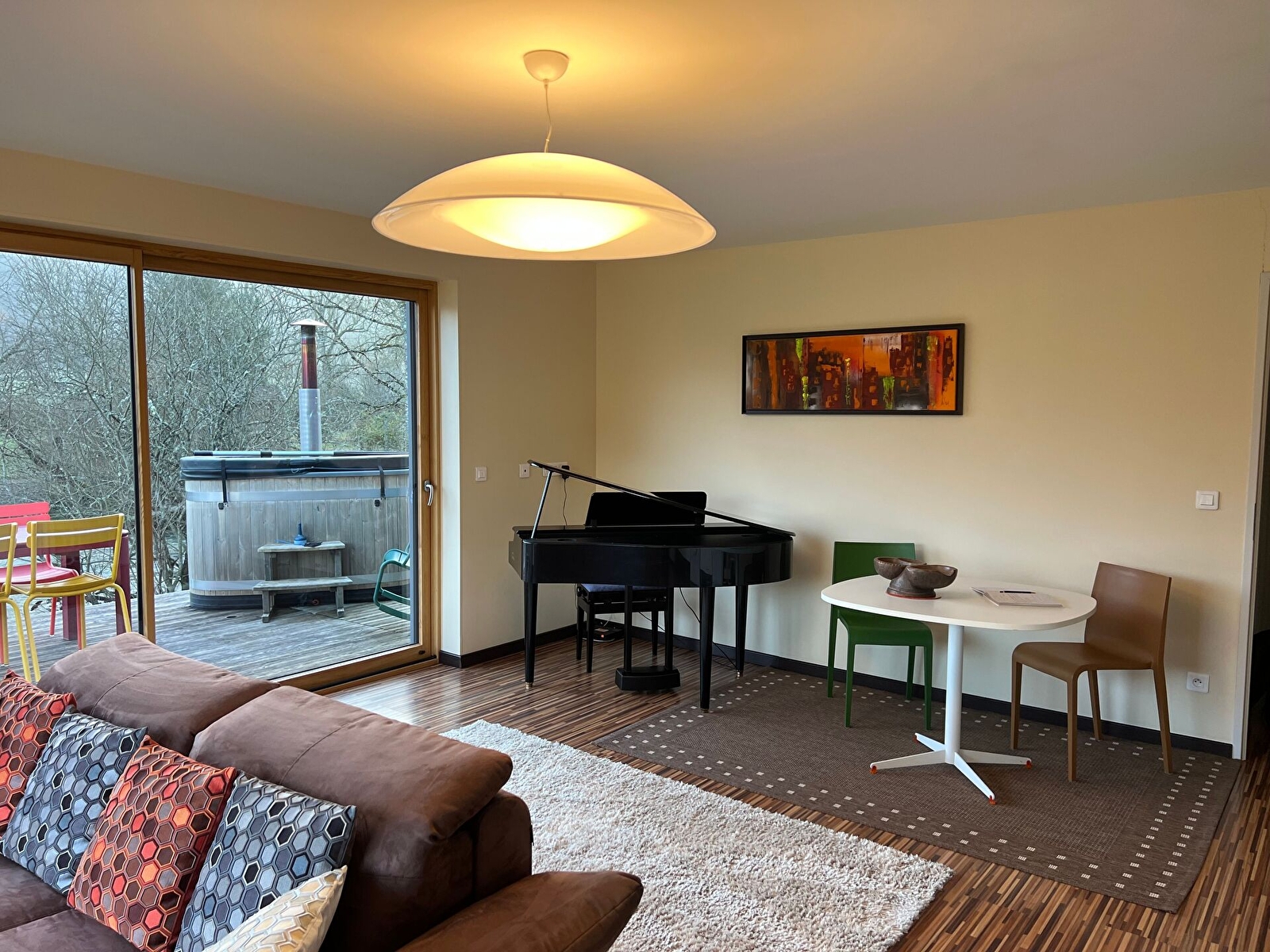 A 35 mn de Dijon, dans un cadre bucolique, le Cube est une maison sur pilotis, ossature bois écologique, BBC, de style contemporain, surplombant la rivière "l'Ignon".