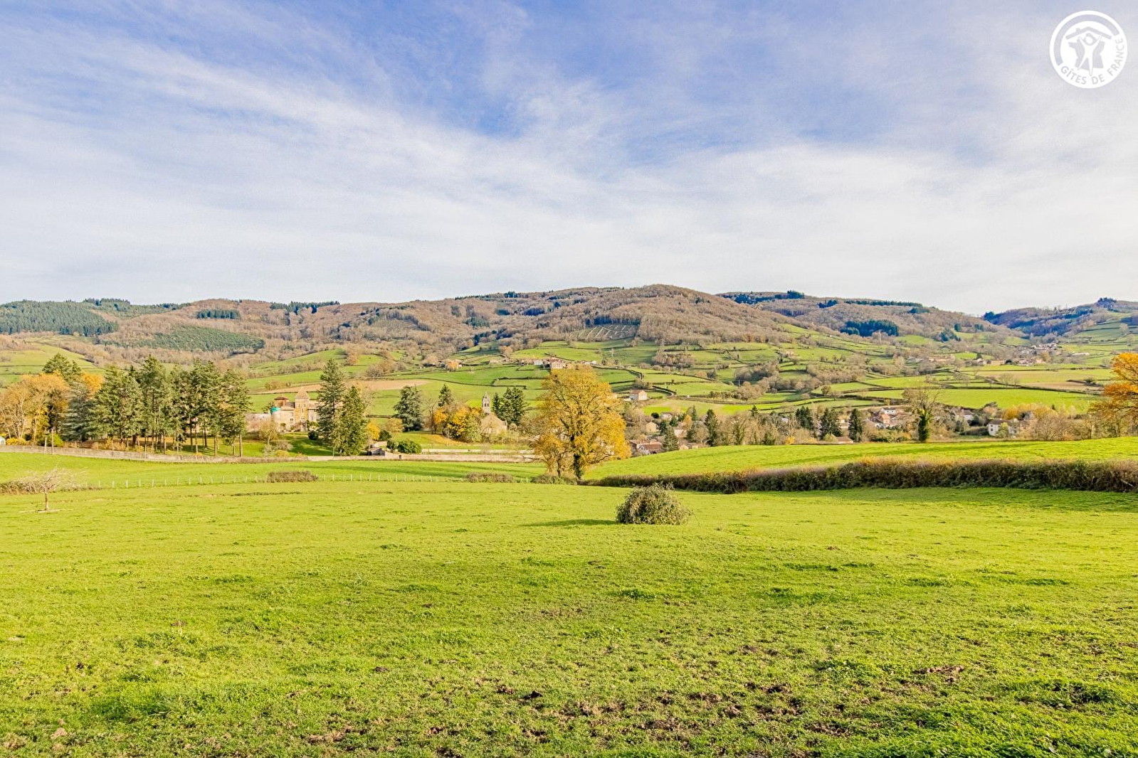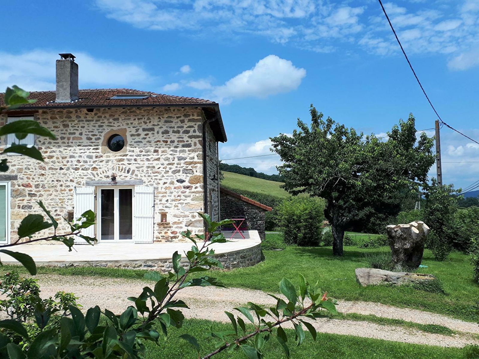 Élégante ferme traditionnelle de caractère du XIXème, soigneusement restaurée, lovée en "balcon panoramique" à flanc de colline, au "soleil levant" sur un coteau exposé, face au château familial d'Alphonse de Lamartine, célèbre poète romantique, romancier & homme politique français natif du "pays", pétri de grande histoire & abritant son tombeau (Victor Hugo, Charles Nodier ou Franz Liszt y séjournèrent), à deux pas d'un bucolique lac de 10 ha aménagé pour la baignade (pêche & pédalos possibles). Calme & tranquillité en lisière de prairies (où paissent les vaches charolaises en saisons), niché sous des crêtes boisées au cœur d'un petit hameau rural typique dominant un verdoyant vallon & le pittoresque bourg de Saint-Point, parfaitement sauvegardé. Magnifique campagne alentour préservée de montagne douce (protégée en "Zone Natura 2000" & ZNIEFF pour richesses faunistiques & floristiques), conjuguant bucoliques bocages & profondes forêts sauvages, non loin des premiers vignobles. Vaste terrasse exposée ouverte sur un agréable jardinet privatif où trône un cerisier, sur une belle propriété fleurie de 1000m². Superbe vue dégagée sur les monts du mâconnais & nord Beaujolais et la campagne environnante. Spacieux gîte de très bon confort. Belle pièce de vie dotée d'un imposant volume "cathédrale". Chaleureux cachet campagnard sublimé par l'âme du bâti originel (murs en pierres avec ses petites niches, linteaux en pierres & bois, insolite fenêtre en "œil de bœuf", charpente & poutraison… d'époque). Beaucoup de charme & caractère. Ambiance douillette.