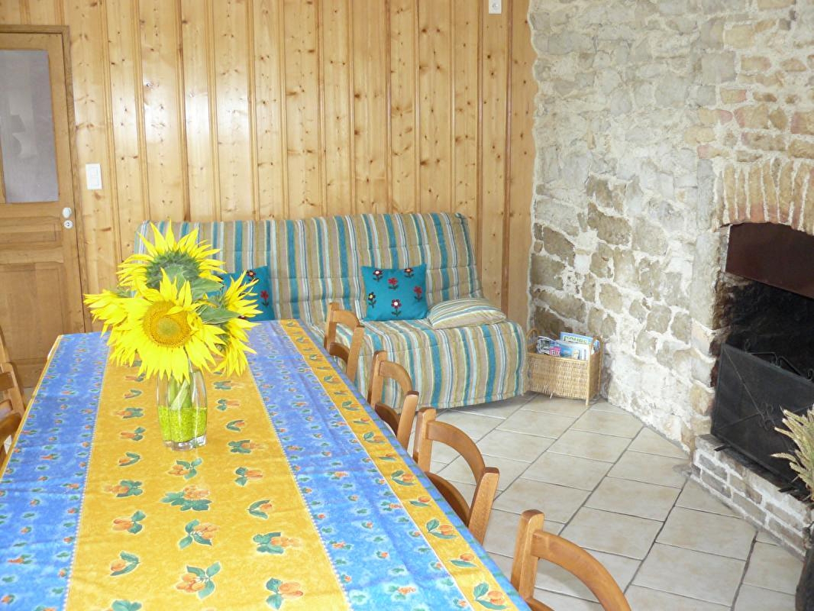 Maison mitoyenne entièrement rénovée, au rez de chaussée, séjour-salon, coin cuisine intégré, congélateur, canapé convertible, salle d'eau, wc indépendants, Chambre 1: 1 lit 2 places, à l'étage chambre 2: 4 lits 1 placesuperposés + 1 lit tiroir, chambre 3: 1 lit 2 place, salle de bains, wc indépendants. Chauffage électrique, cour, terrasse, salon de jardin, barbecue, terrain attenant non clos. Toutes charges comprises.