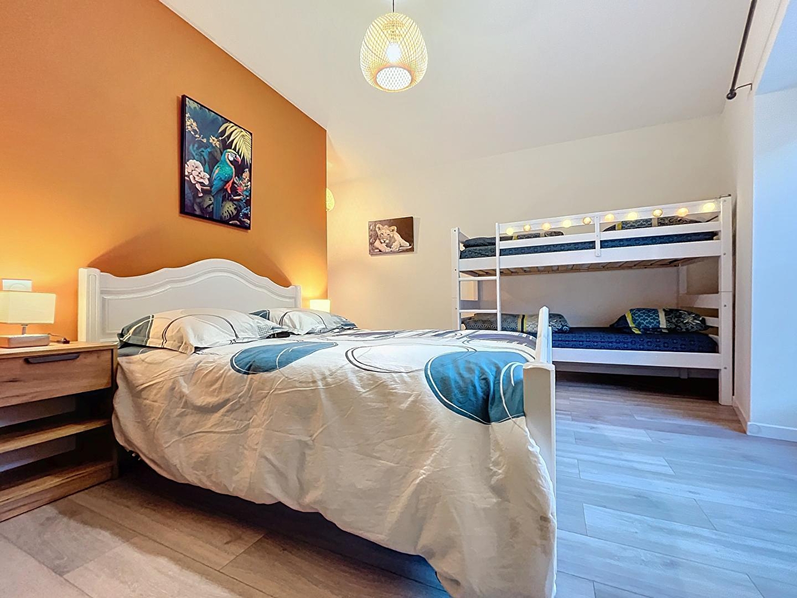 Située en plein cœur du centre de Clairvaux-les-Lacs, cette maison mitoyenne entièrement rénovée saura vous apportez tout le confort nécessaire pour passer d'agréables vacances : au rez-de-chaussée, pièce de vie avec cuisine toute équipée et espace salle à manger avec poêle à granulés de bois (2 sacs fournis gratuitement), WC indépendant. A l'étage : coin salon avec canapé et TV, salle d'eau et wc, deux chambres : l'une avec 1 lit double (140*190) et la seconde avec 1 lit double (140*190) et 2 lits superposés. Une troisième chambre est également accessible au 2ème étage par un escalier étroit, elle se compose d'un lit double (140*190). Pour votre plus grand confort, les lits seront faits à votre arrivée. Un garage est également à votre disposition pour les motos et les vélos et aux beaux jours, cet espace est aménagé en terrasse avec salon de jardin et plancha. Possibilité de stationnement devant le gîte ou sur un parking public situé à 50 m. Commerces sur place et lac avec plage aménagée à 10 mns à pied. De nombreux sites touristiques aux alentours : les cascades du Hérisson, Baume-les-Messieurs et Château-Chalon, classés plus beaux villages de France. Les sentiers de randonnée en forêt ou au bord des lacs vous enchanteront ! Vous trouverez également des locations de vélos (y compris électriques) et de nombreuses activités de plein air comme canoë kayak, accrobranche, jeux aquatiques, randonnée équestre...