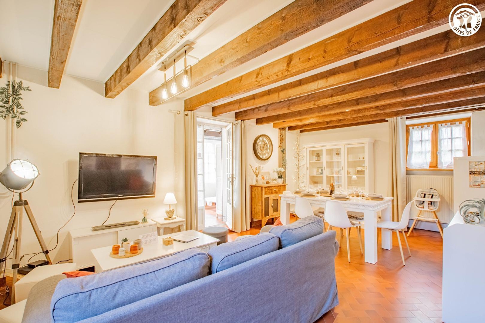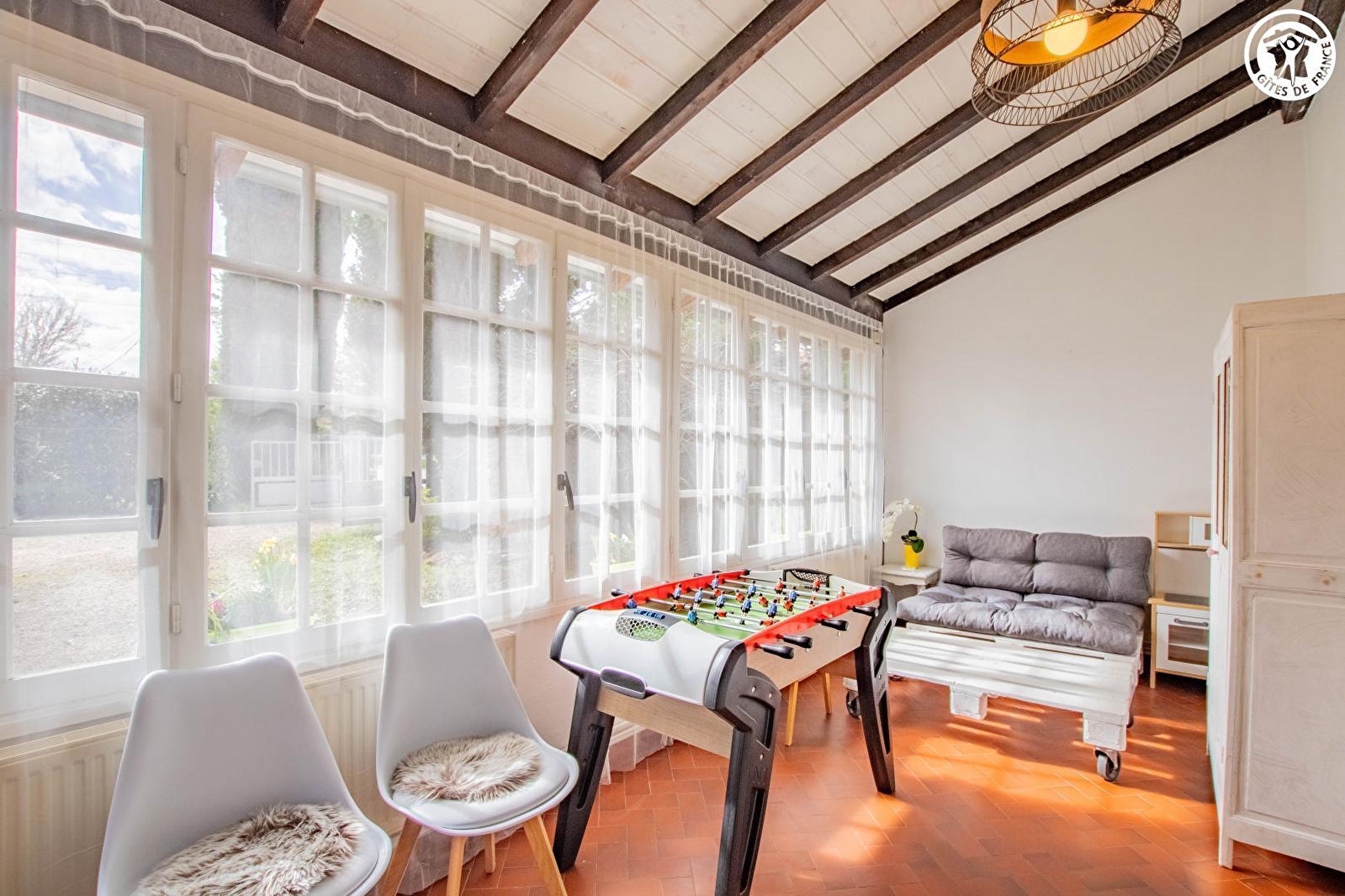 Composition : Gîte mitoyen au logement des propriétaires abritant 3 chambres d'hôtes (totale indépendance). Wifi (fibre). Chauffage PAC. Climatisation. Rdc : séjour-salon-cuisine, salle d'eau (douche/Wc), véranda-espace détente. 1er étage : 2 chambres (lit 2 p. 160x200cm dans chaque). 2ème ét. : 1 chambre (3 lits 1 p. 90x190cm + lit enfant 70x140cm), avec sde privée (douche/Wc). Jardin clos (400m²) + cour + garage (1 place/local vélos) + parking privés. Terrain en commun avec spa extérieur abrité (accès payant), ping-pong & balançoire. Supermarché 1.5 km. Toutes commodités 2.5 km.